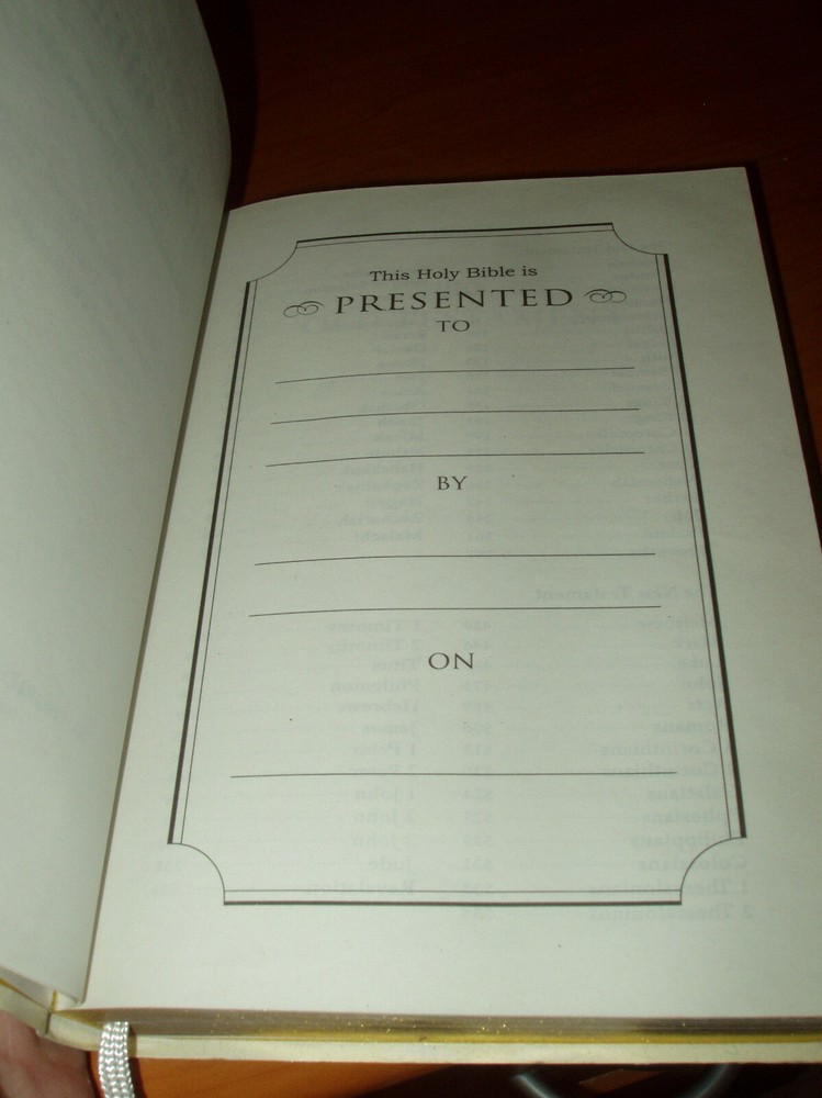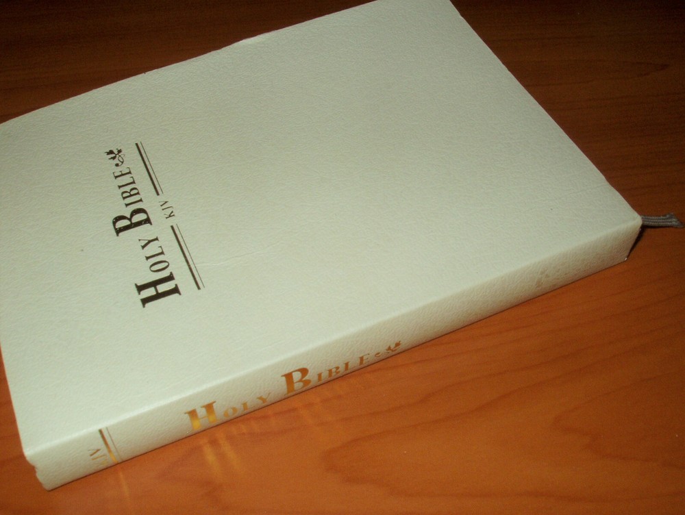 Holy Bible Authorized King James White Bible * Old & New Testaments Gold Gilded Has fabric place marker. Gold gild along the sides. King James Version containing both the Old & New Testament. Brand New - dedication page is blank.