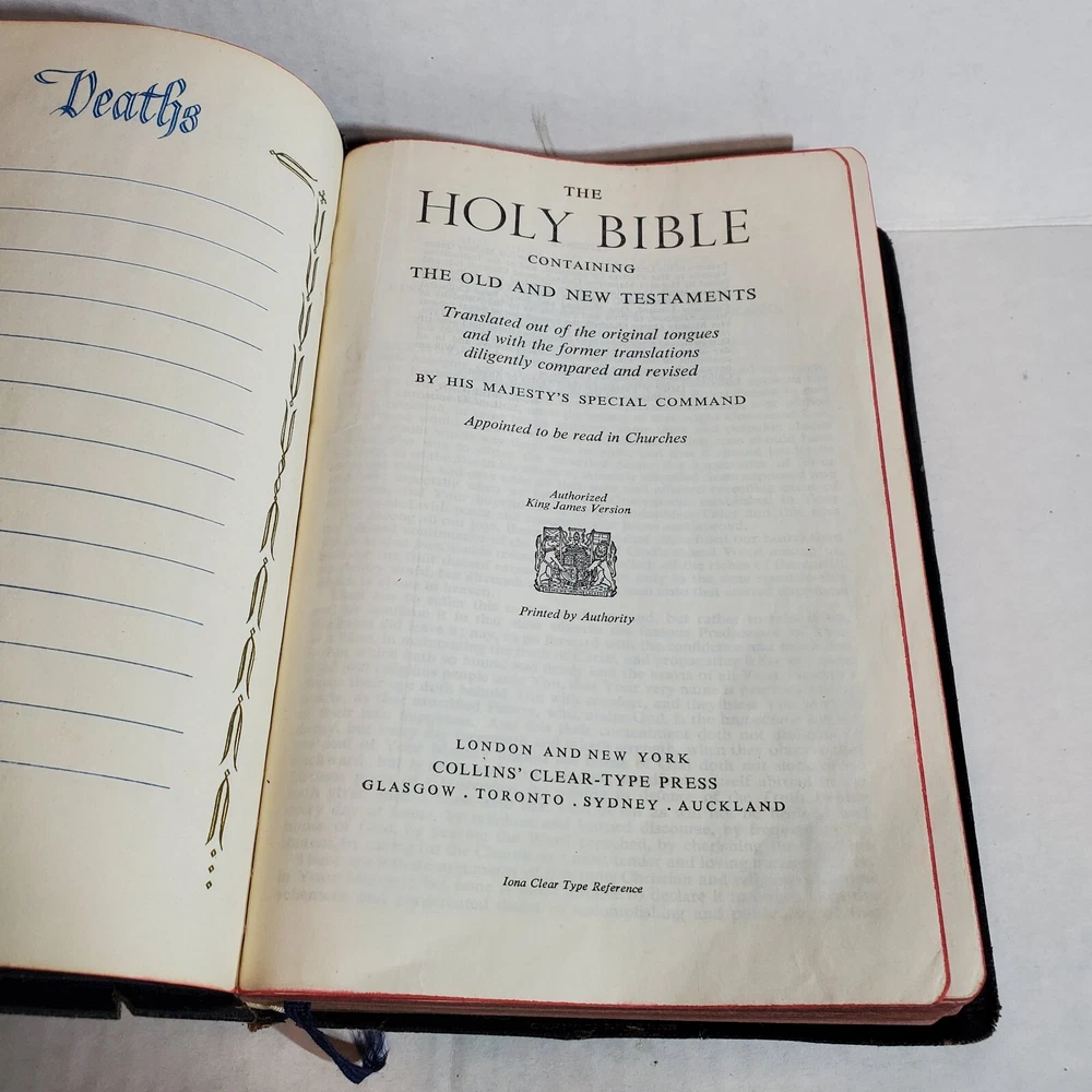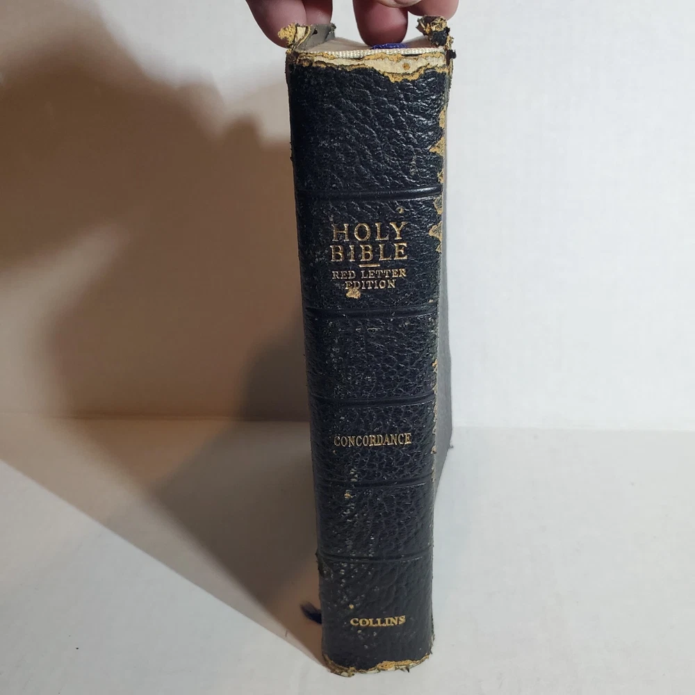 The "Holy Bible Concordance Collins Authorized KJV 1959 Black Leather" is a vintage English-language Holy Bible published by Collins in Great Britain in 1959. It is a leather-bound edition with special attributes such as being indexed, making it easier for readers to navigate through the content. The book is part of the Religious & Spiritual genre and is focused on the topics of Bible and Bibles, catering to adult readers interested in religion and beliefs. Good condition for age. Please see images. AY58