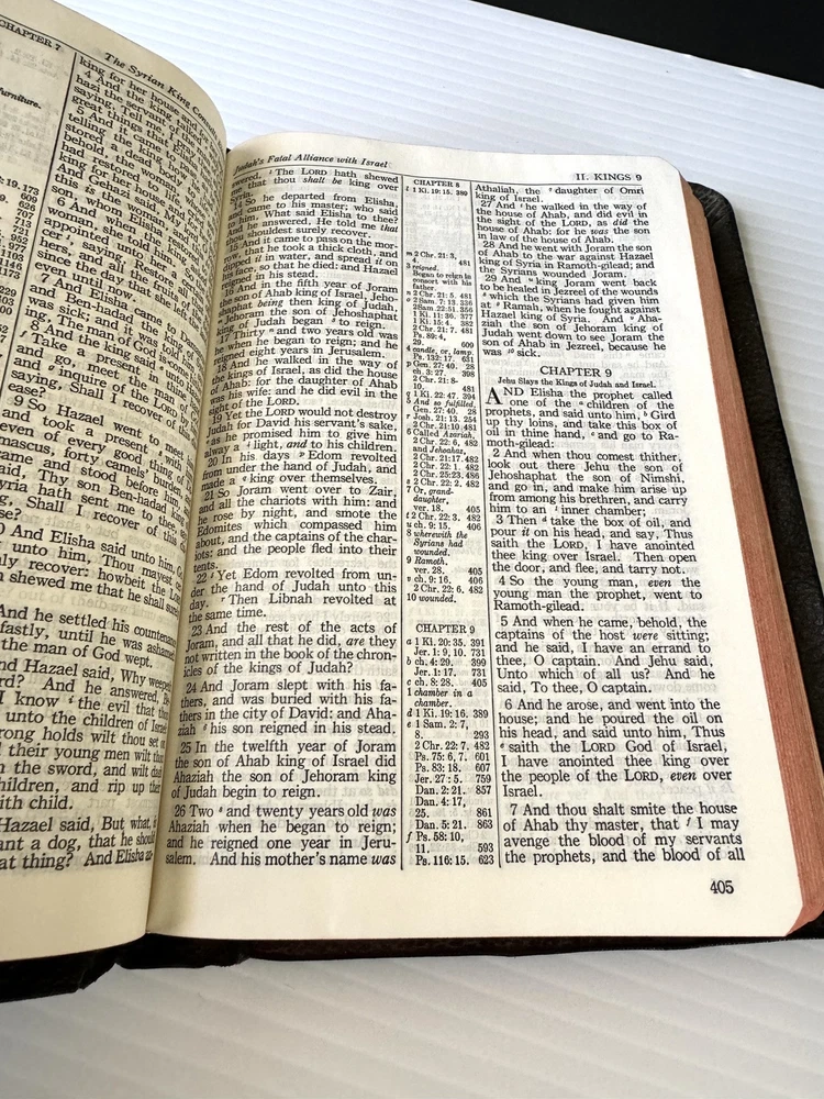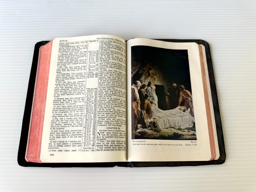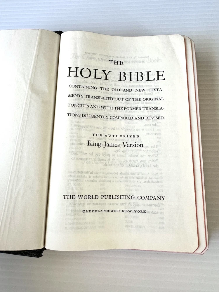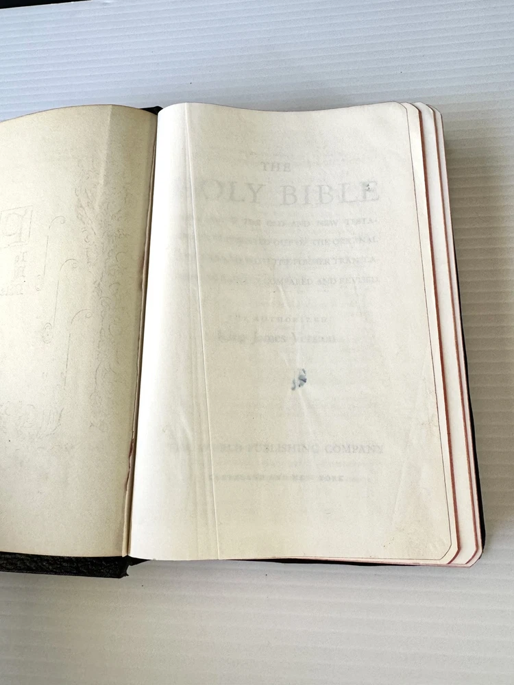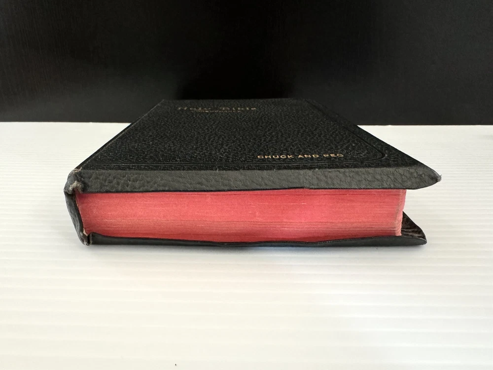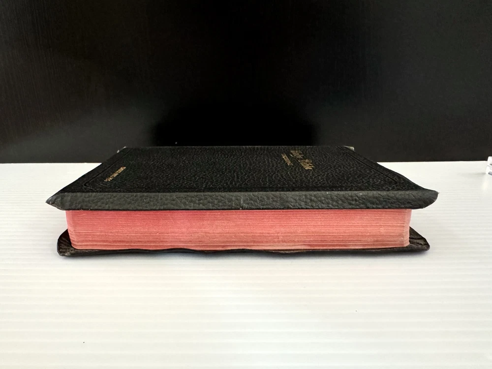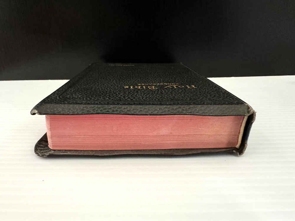 This vintage KJV Bible is a treasure! The rich black leather binding and red-edged pages give it a timeless, elegant feel. Though showing some age, the craftsmanship is solid, and the red-letter text makes scripture stand out beautifully. The personalization adds a unique touch, making it feel even more special. Perfect for collectors or anyone who appreciates classic, well-made Bibles. The included concordance and illustrations are a great bonus!