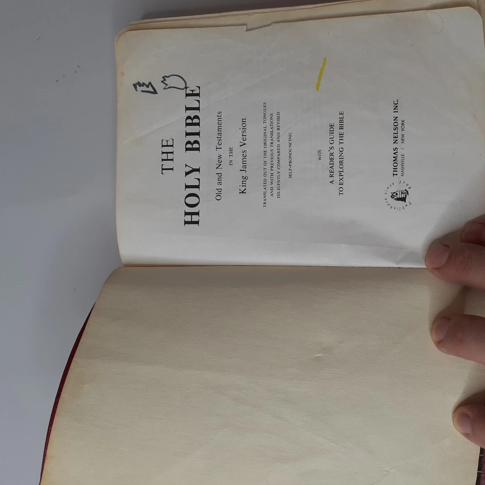 Holy Bible Dictionary Concordance 1970 KJV Nelson 176 Red Genuine Leather Brand: Nelson Color: Red cover, gold edges Version: KJV -Inventory# MISC3