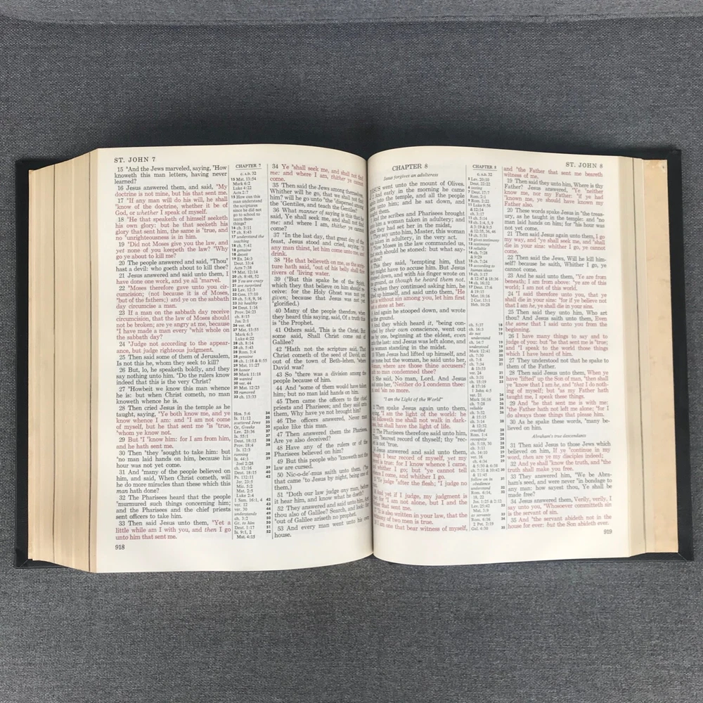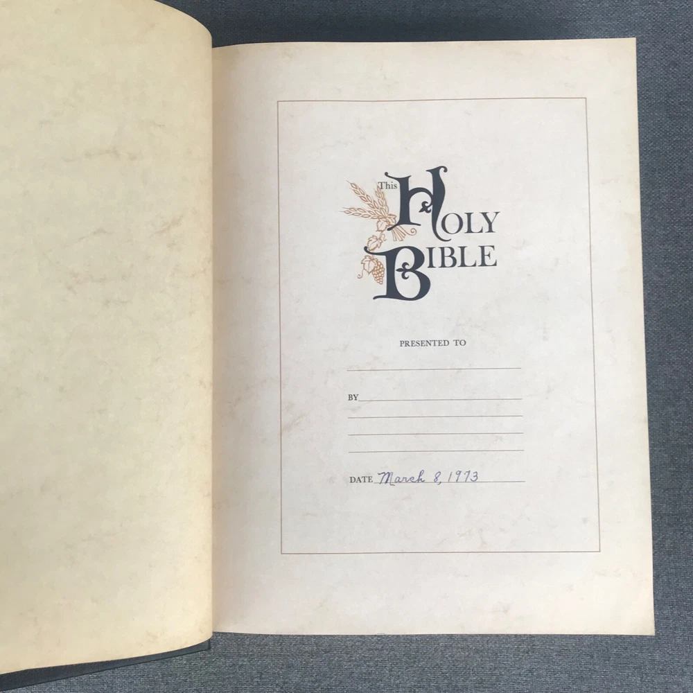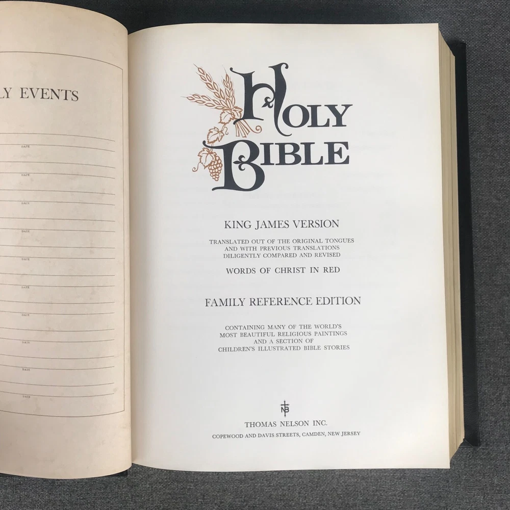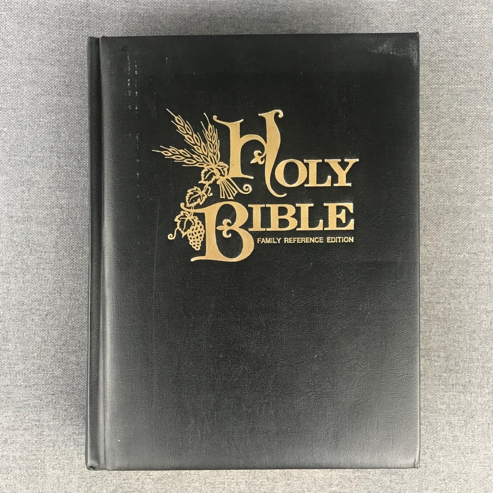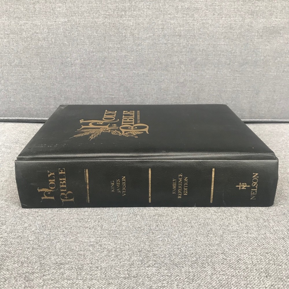 Holy Bible Family Reference Edition 1971 Thomas Nelson Red Text Large Print Black. Vintage. Pre-owned in great condition. Large print. Words of Christ in red text. Illustrated. Leather bound. No markings or underlined text found upon inspection other than writing on the presentation page. See photo. Made in America. Printed in USA. Please see photos for details and reach out with any questions. Stored in a smoke-free and pet-free environment. Shipped with sustainable, recycled packaging.