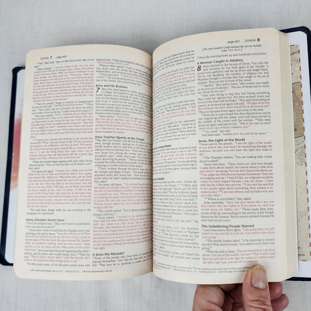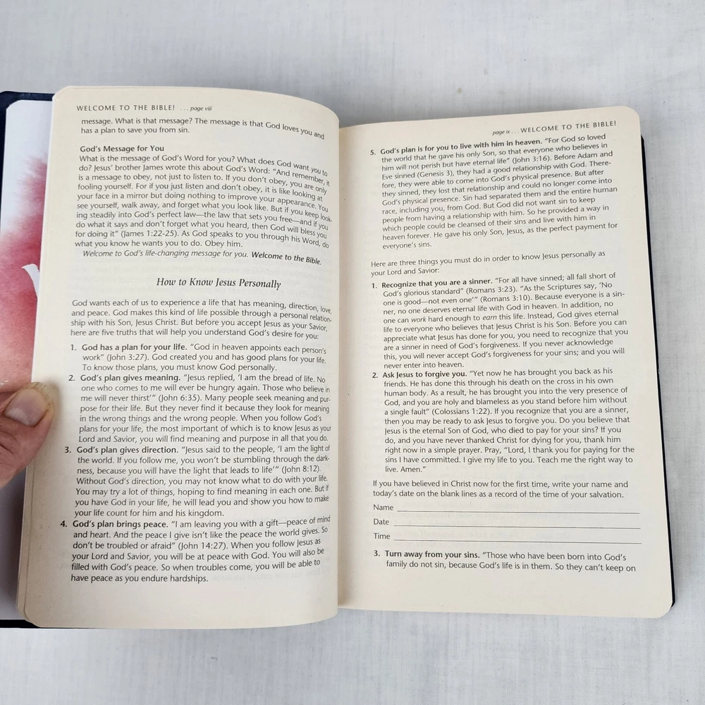 Shipping may be available to CANADA at a lower rate. Please contact us to receive a more accurate shipping estimate. Excessive shipping charges are happily refunded to our customers. Holy Bible Gift & Award Edition New Living Translation Navy Blue Faux Leather Preowned condition. Copy may have the previous owner's name written on the inside cover. Typical signs of cosmetic wear for items of this age, such as corner-bumping and cover-discoloration & edge-wear. Please see pictures for details, as they are considered part of the description. Smoke-free home. Select another book from our Lilac Cellar storefront for only $1 additional shipping. Stack on the deals - ADD MORE, SAVE MORE! 2 books = 20% discount. 3 books = 25% discount. 4 books or more = 30% discount. Shipping and order discounts calculated at checkout.