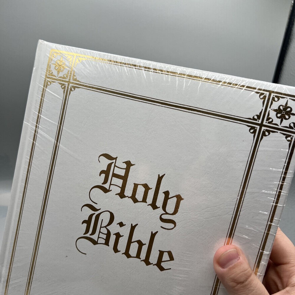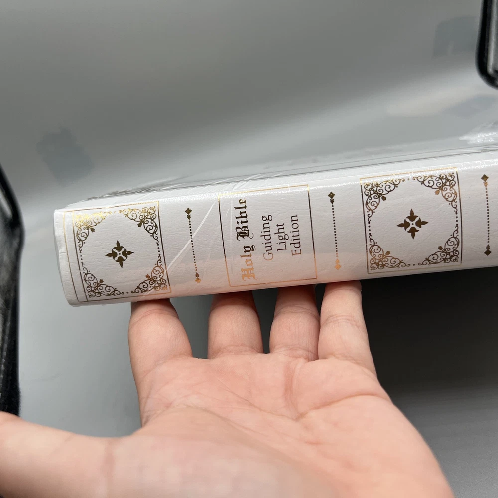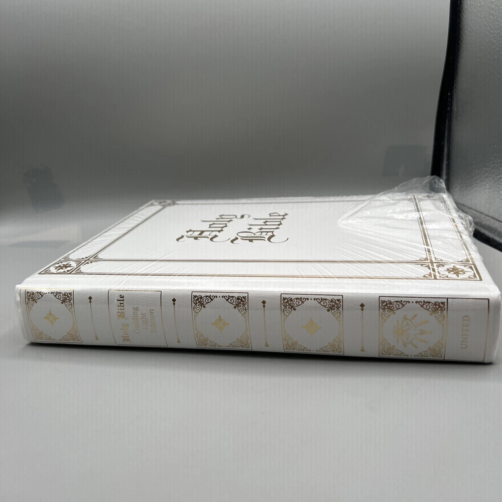 Holy Bible: Guiding Light Edition Partially Sealed White Leather United New New but has big hole in seal. Please see all photos before purchasing. If you have any questions please shoot me a message and I'll get back to you as soon as possible. Open to reasonable offers. Thanks for considering my small business.