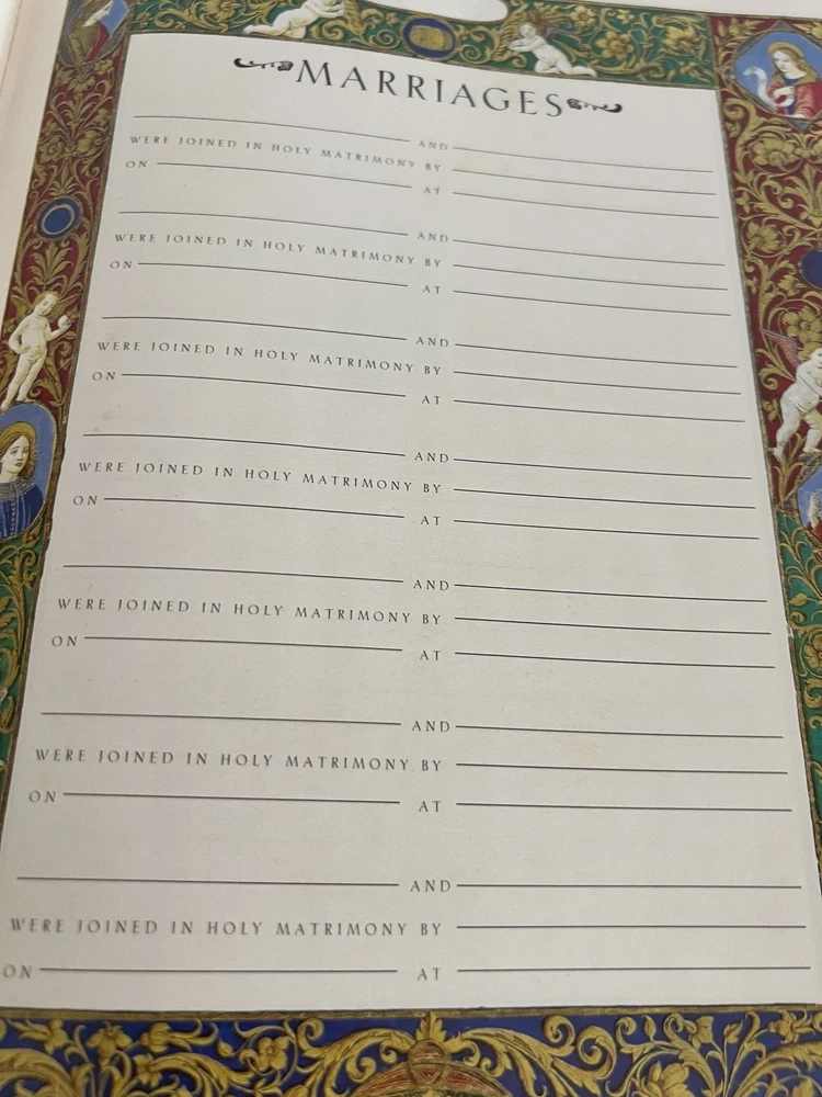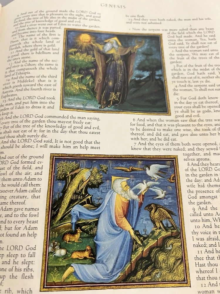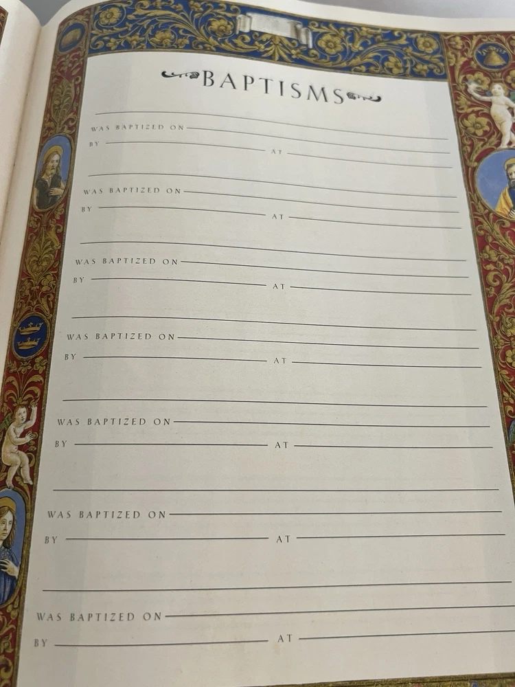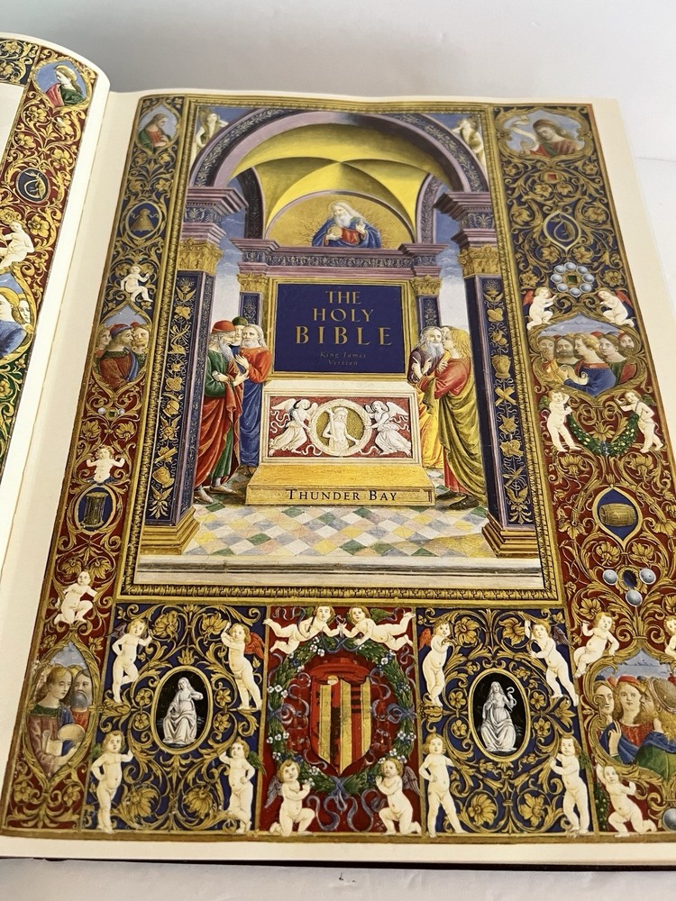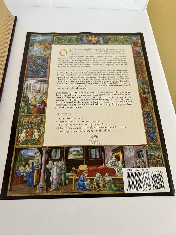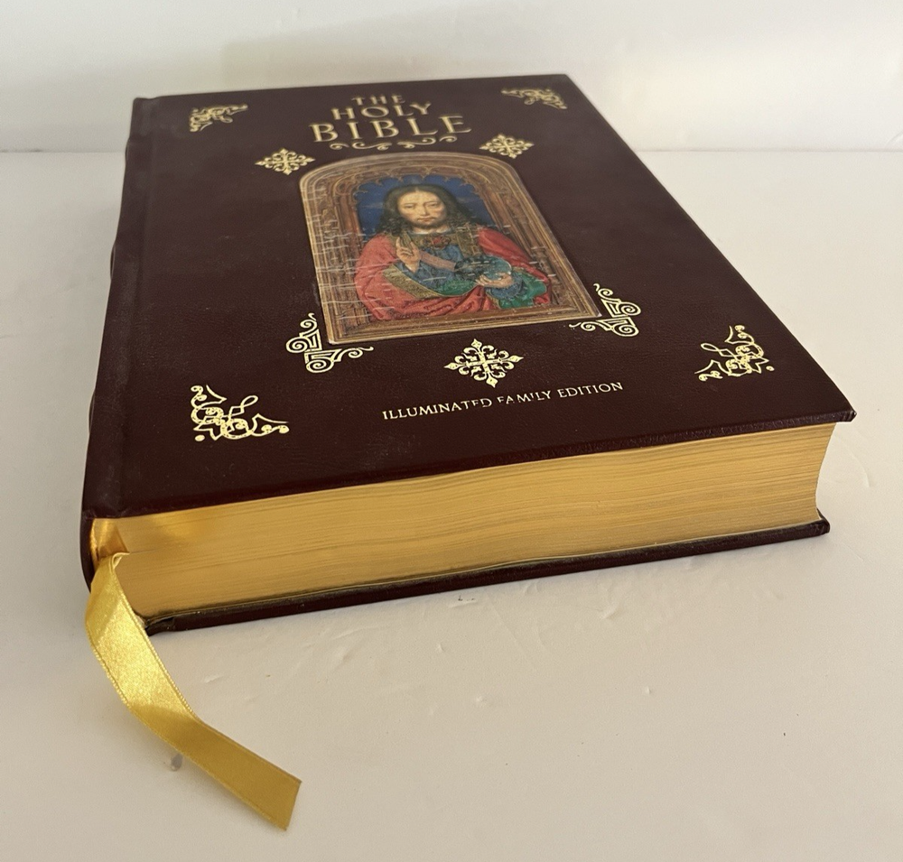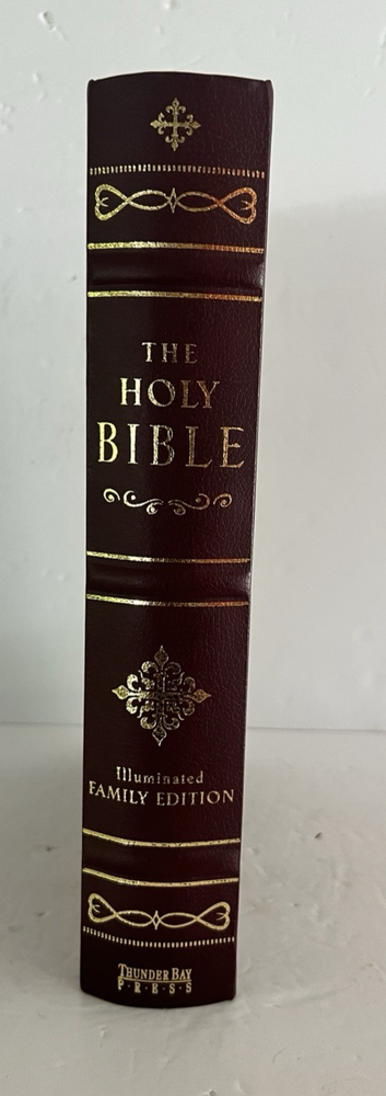 The Holy Bible Illuminated Family Edition is a stunning full-color Thunder Bay Press publication from the year 2000. This hardcover gem is a treasure trove for both the spirit and the imagination, featuring gilded pages and a sumptuous leather-bound cover that invites readers to delve into its 875 pages. Each detail, from the illustrated pages to the included bookmark, is crafted to enhance the reading experience. With its broad range of genres including Spirituality, Religious & Spiritual, Art & Culture, Christianity, and Historical, this Bible is not only a spiritual guide but also a piece of art. The book measures 11.25 inches in height and 9 inches in width, making it a substantial addition to any collection. Personalized and signed, it's a unique and meaningful edition for individuals or families seeking a more interactive and visually engaging Bible. Like new condition, Book is signed.