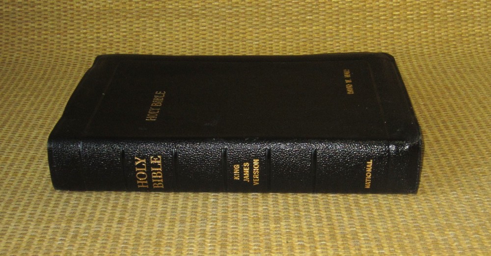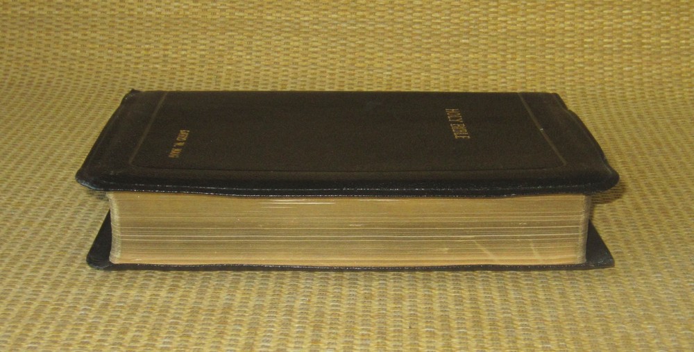 Beautiful Black Leather National Holy Bible! This is a finely bound version of the National KJV Bible. Features: **Leather binding **Bound silk bookmarks **Gilded page edges **YAPP covers **Words of Christ in red **5.75" x 8.5" x 1.5" (cover dimensions) **Illustrations and More! Condition is as described and pictured. Very solid and beautiful binding. ** USPS Fast Mail Shipping w/ Insurance! Contact me with any questions, and have fun.