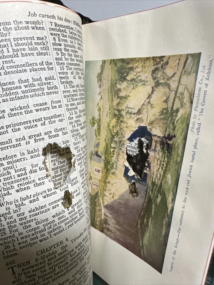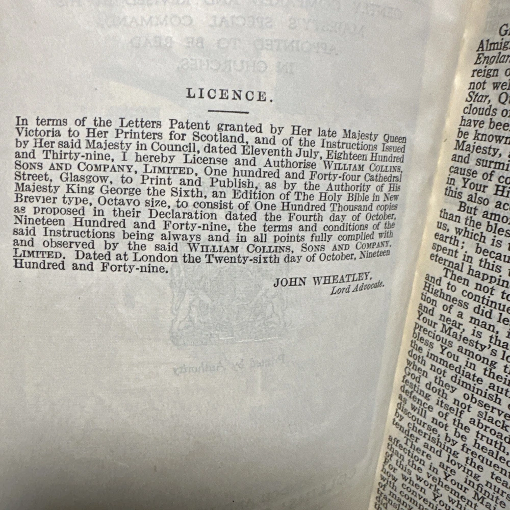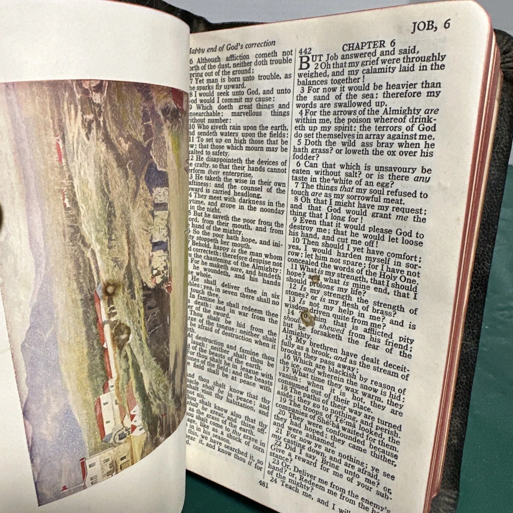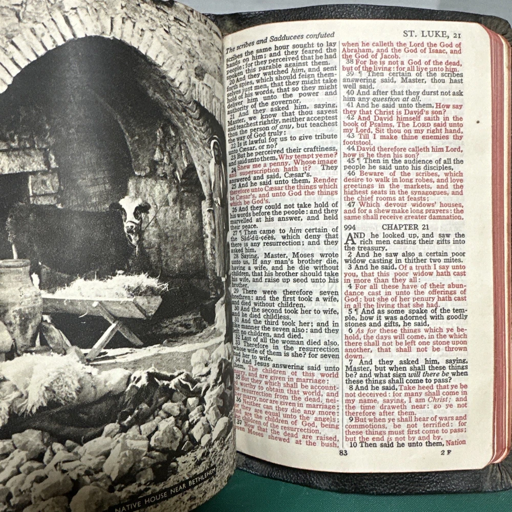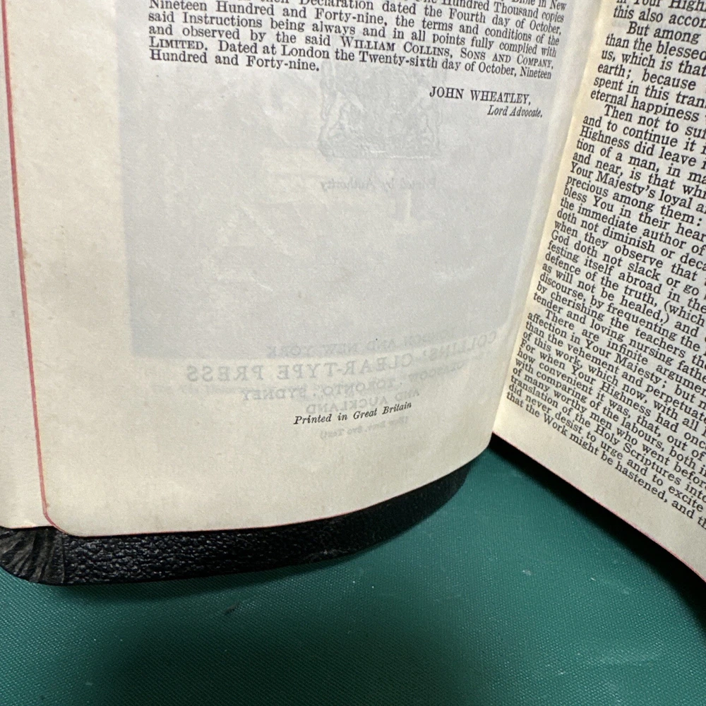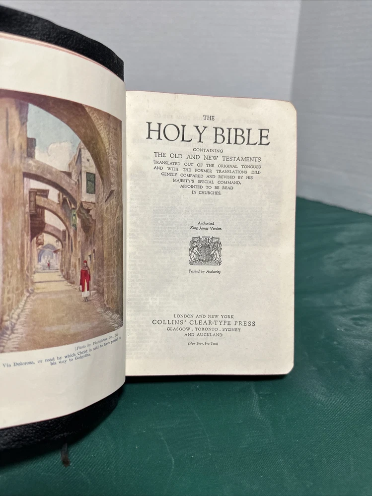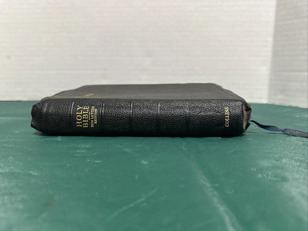 This is an exquisite edition of the Holy Bible in the King James Version. The Bible is beautifully bound in genuine leather covers, making it a perfect addition to any book collection. Published by Collins in 1949, the book includes red-letter indexed pages. The Bible measures 5 inches in length, 8 inches in height, and 1.5 inches in width, making it a convenient size for travel or home use. The book is written in English and covers the topic of religion and spirituality. This vintage book is perfect for young adults and adults alike, and the narrative type is nonfiction.