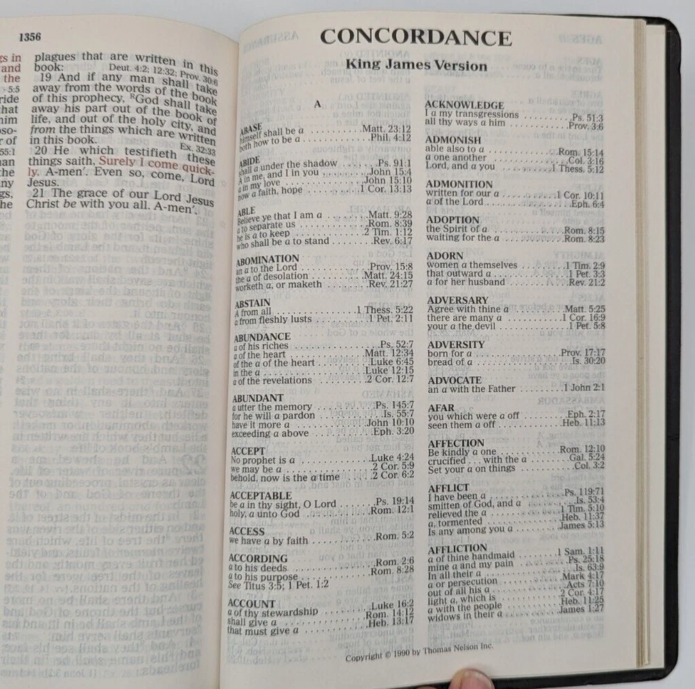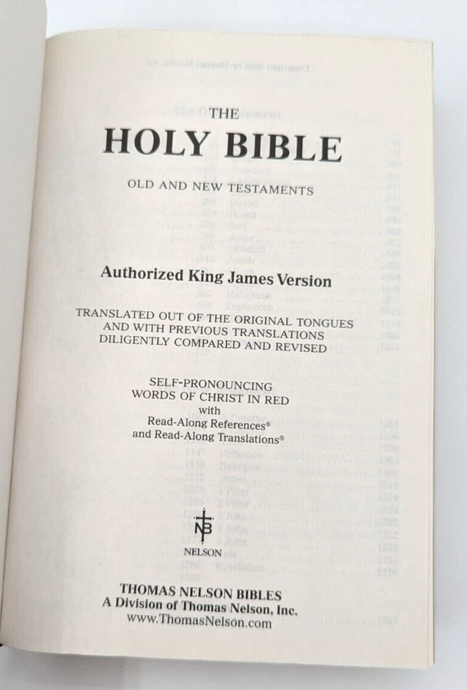 Holy Bible KJV Giant Print Red Letter Concordance Nelson Black Leather 1990 2003, In Good Condition! SEE ALL PHOTOS! Measure- 9.5"x6.5"x1.75" Any questions please ask, Thank You!