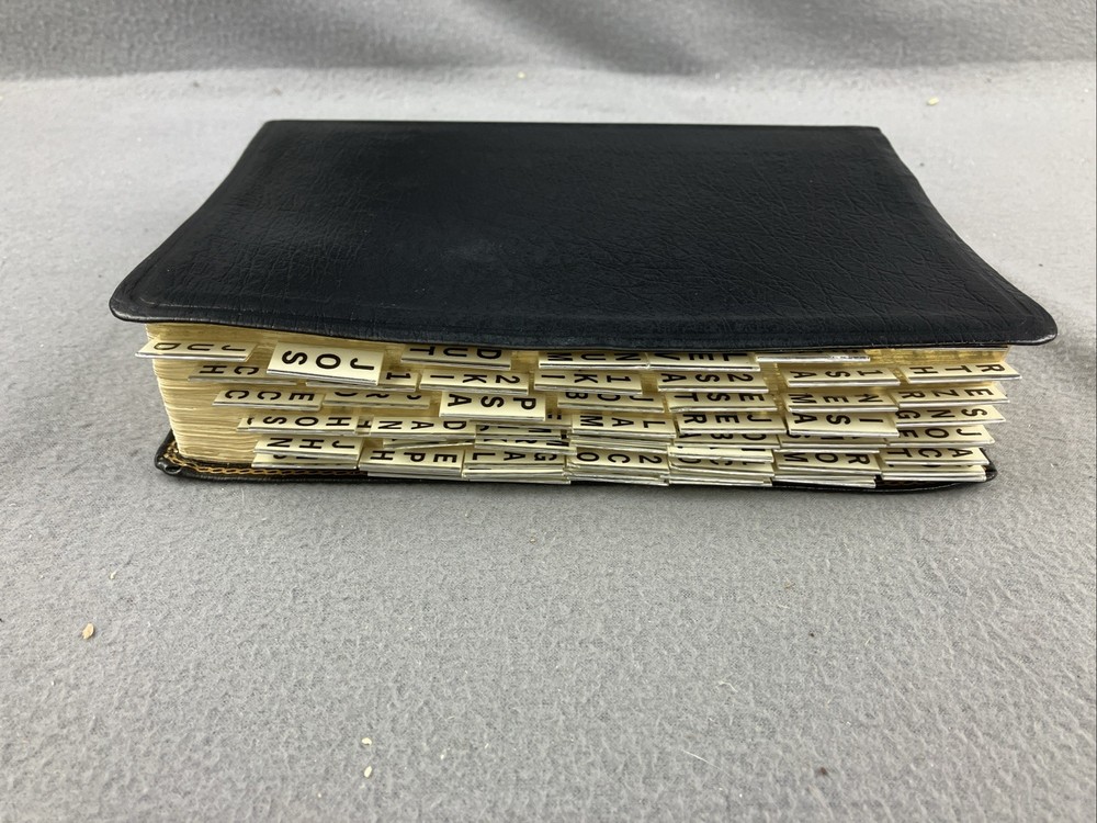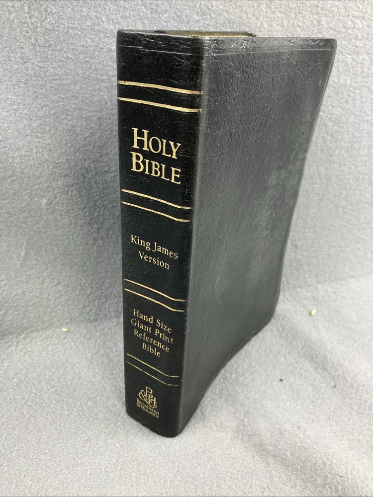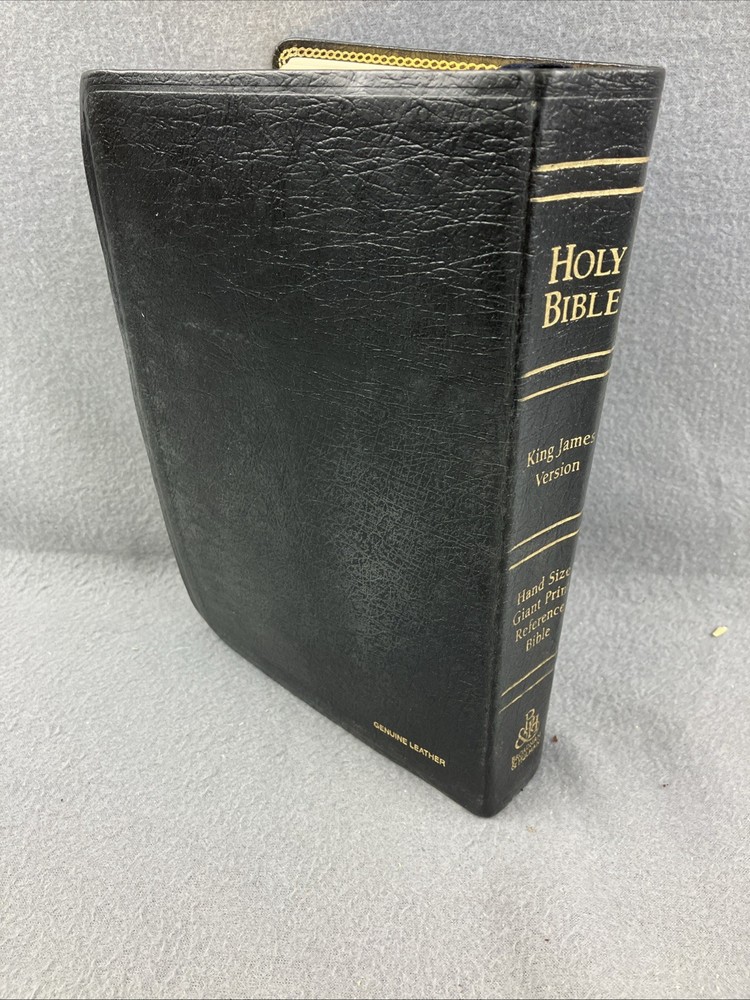 Holy Bible KJV Hand Size Giant Print Reference CornerStone Genuine Leather Tab GOOD CONDITION -- CLEAN COPY/NO MARKINGS ON THE INSIDE (see pics) *Item will be protected well for shipping and comes with a tracking number for confirmation.* I ship out items every day so expect a quick delivery!