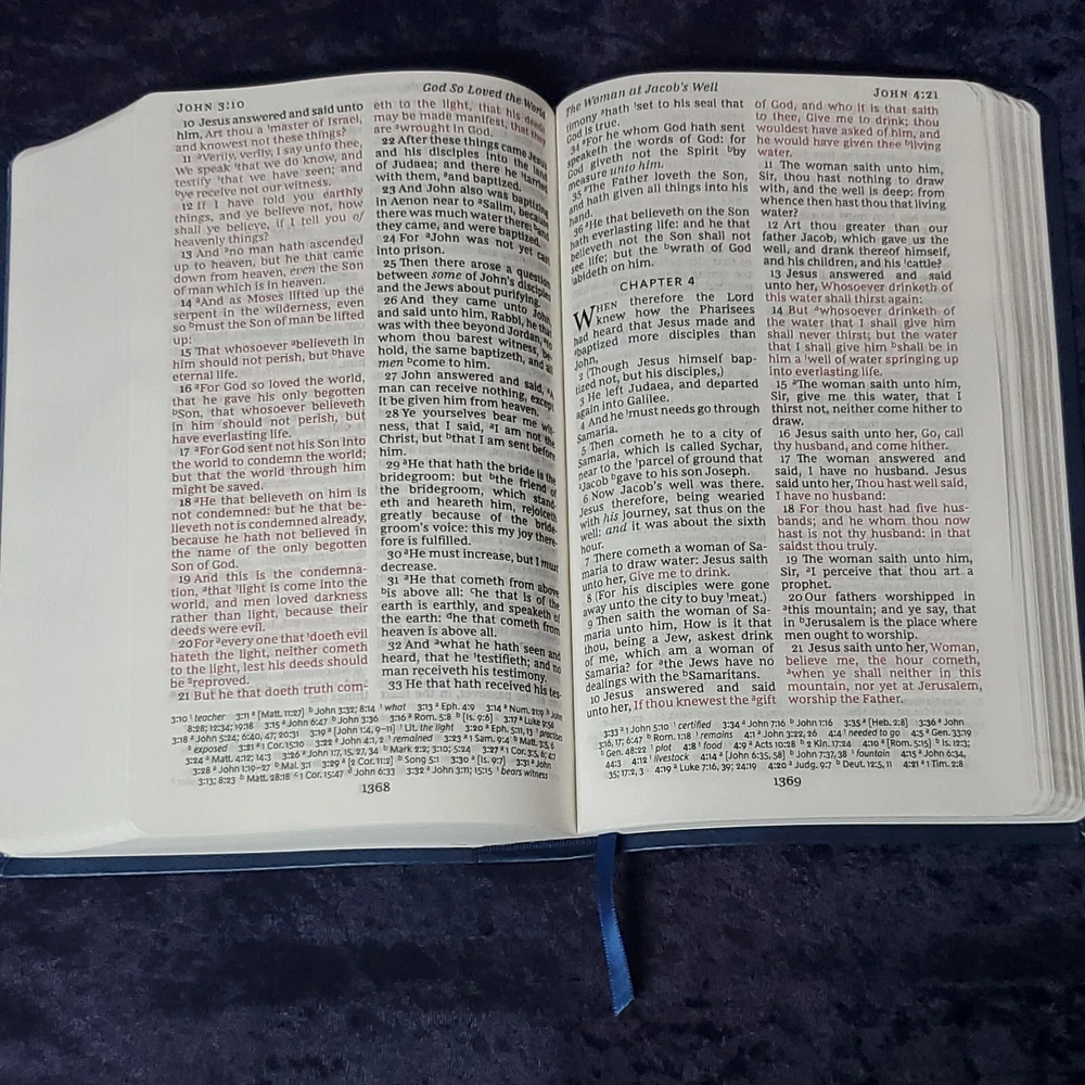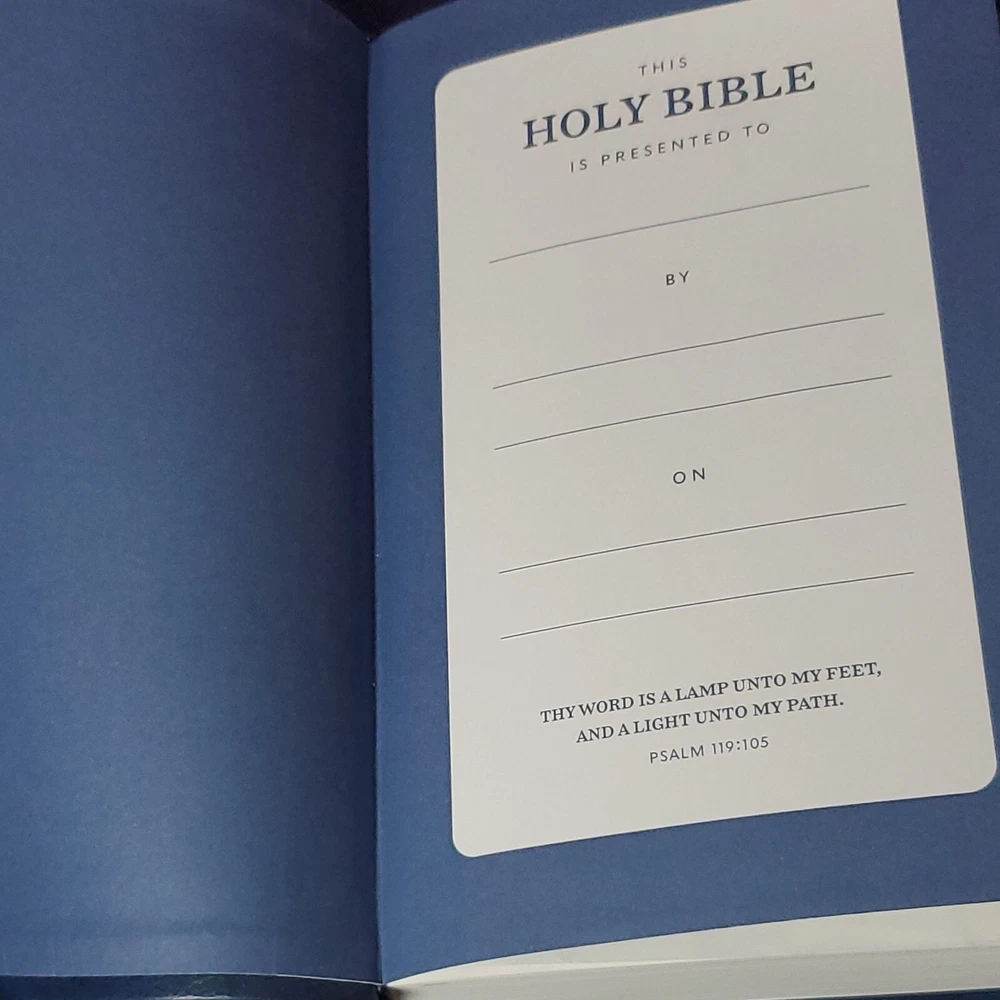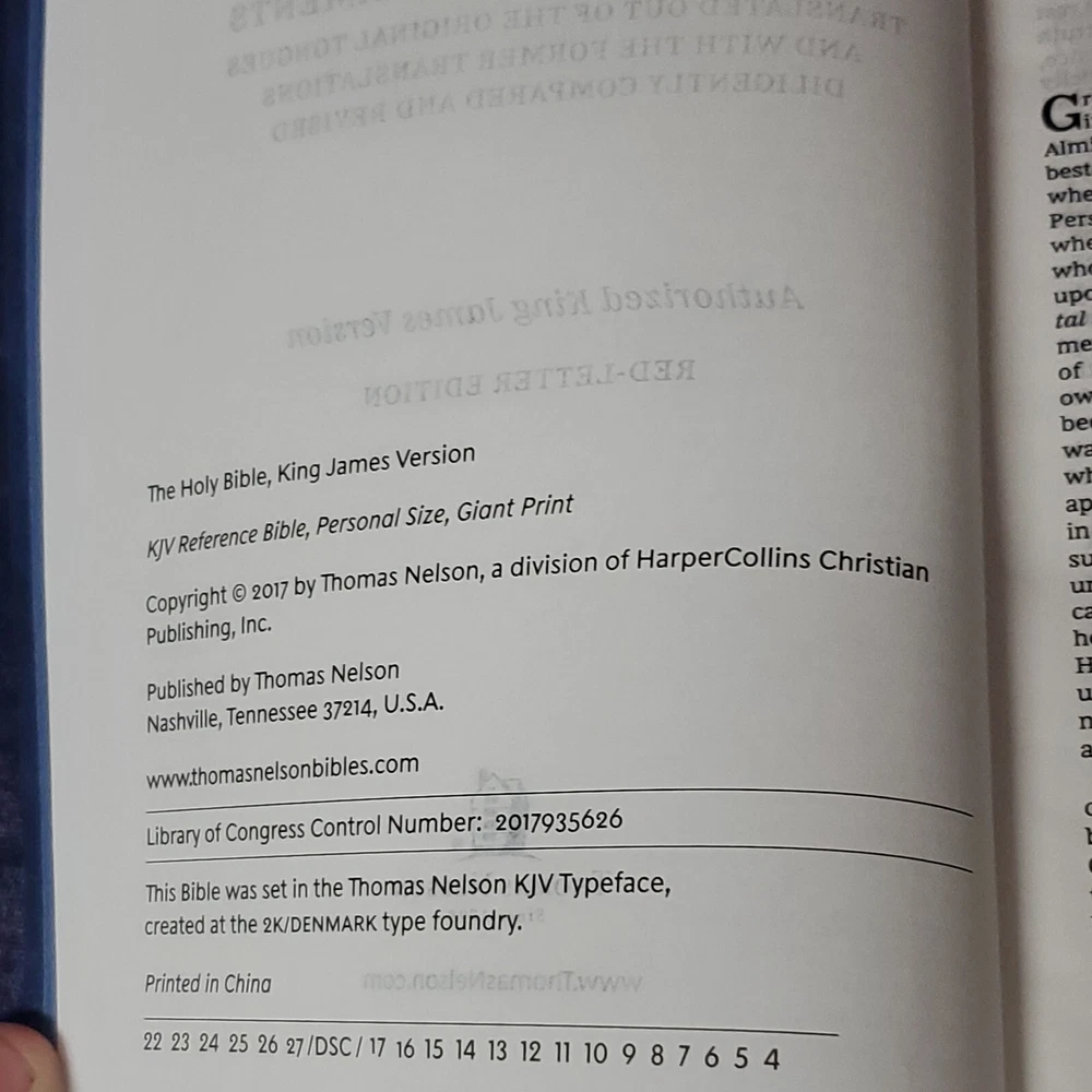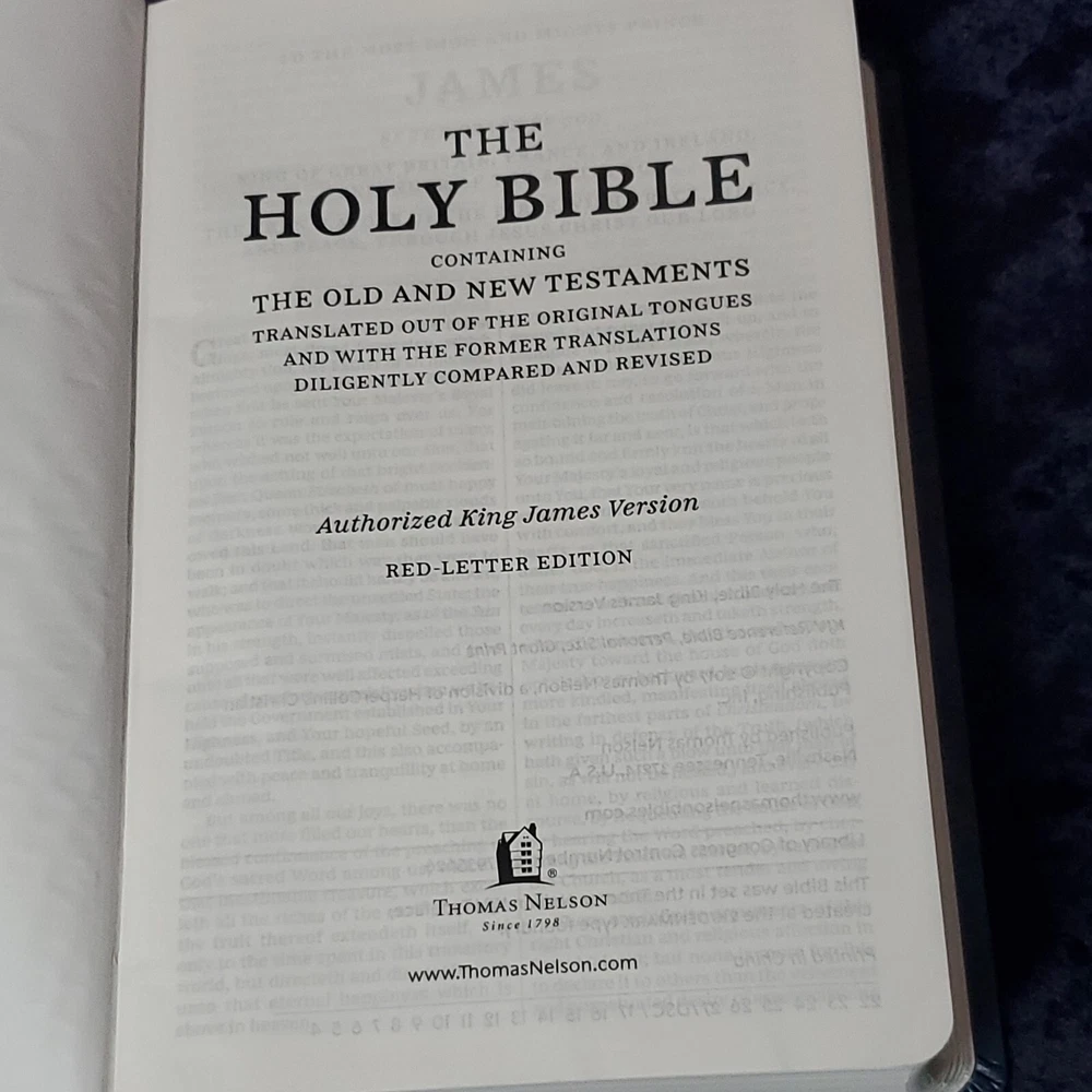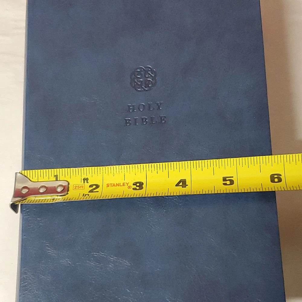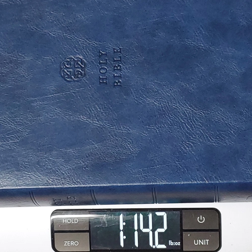 Holy Bible KJV (King James Version) Red letter Edition Giant Print Nelson Blue Leatherette 2017 Nice. Excellent condition, very little evidence of use. Found 2 passages highlighted one in psalms the other in first John. Weight is 1 lb 15 oz before packaging. 5¾ × 8⅞ × 1½" Offers always considered. Thank you for looking. PS1-3ab.110823.14.9
