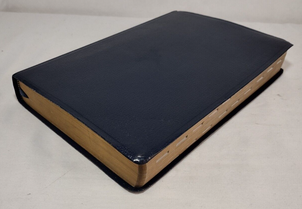 Up for sale is this beautiful copy of the KJV Thumb Index Giant Print Reference Black Leather Bound Holy Bible published by Holman in 2010. It is in like new condition, with no writing, inscriptions, or any shelf ware of damage. All pictures are of the actual item being sold. Returns are easily accepted but rarely needed. I have a great deal of experience shipping large and/or delicate items and guarantee that your item will arrive to you safely. Feel free to message me if you have any questions. Thank you.
