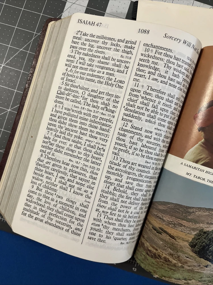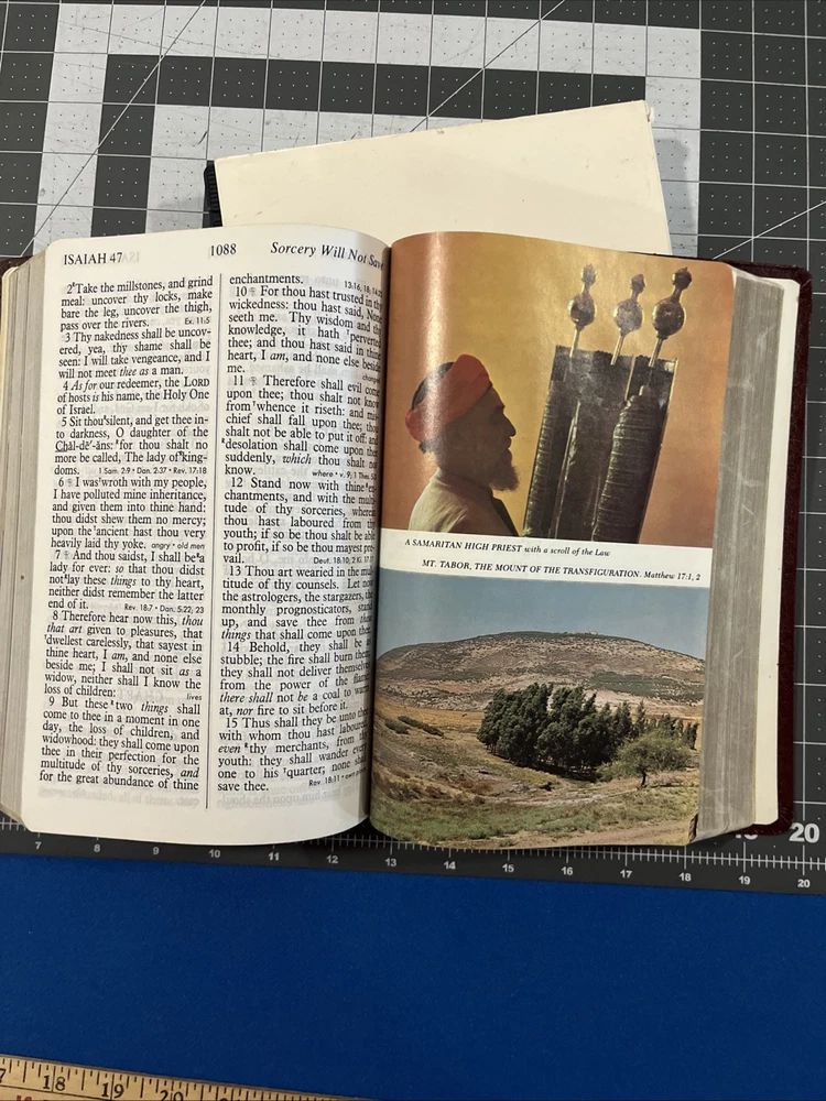 This Bible is absolutely stunning! The giant red-letter print makes Christ's words stand out beautifully, and the rich red leather feels luxurious. Despite the unique backward binding, it's in fantastic condition—well-preserved and clearly cherished. A true treasure for any collector or devoted reader!