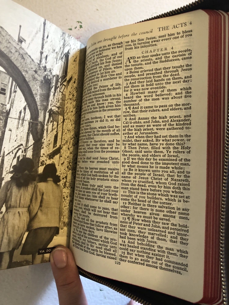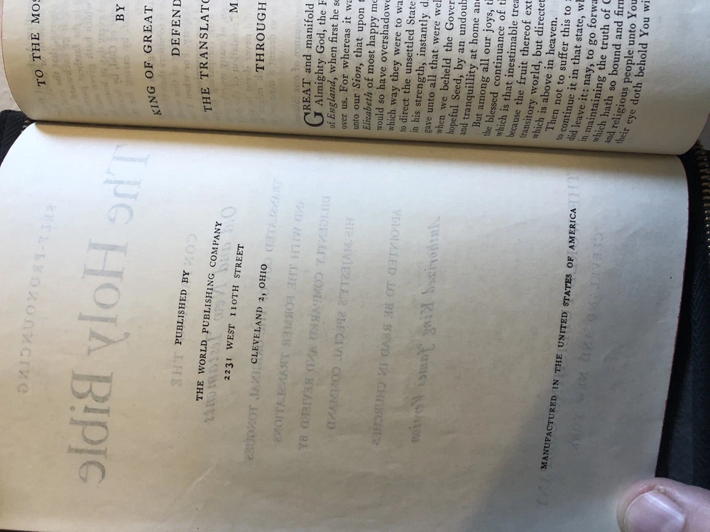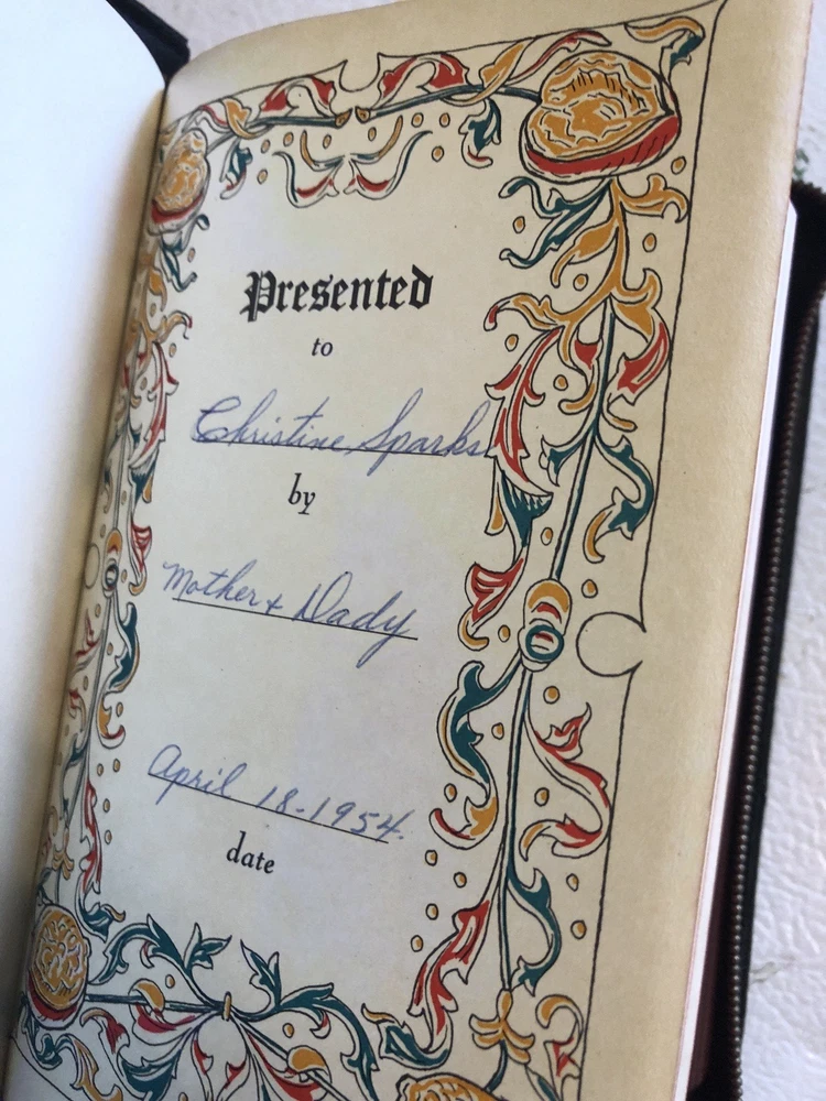 This vintage KJV Bible is absolutely stunning! The leather cover and zipper give it a classic, durable feel, and the self-pronouncing text is a great feature. The illustrated pages add charm, and the personal touch of names on the presented page makes it extra special. Combined shipping is a huge plus—great deal for collectors! Highly recommend!