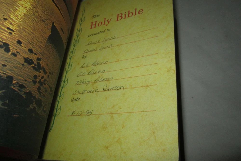 This listing is for the bible shown in the pictures. There is writing at the front on the dedication page, but this is in otherwise perfect condition! Thanks for looking! Every buyer gets a MyStoreRew...
