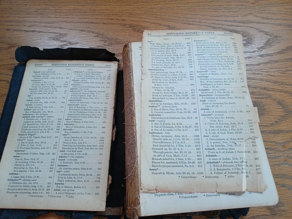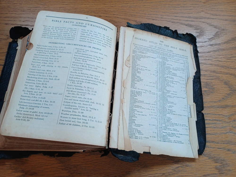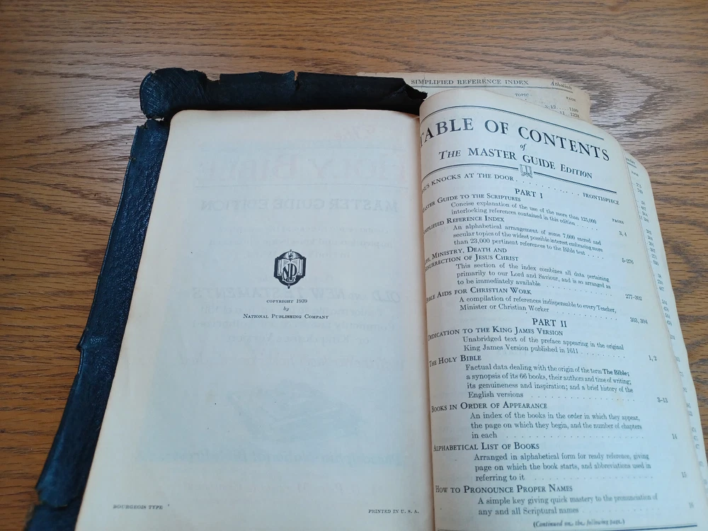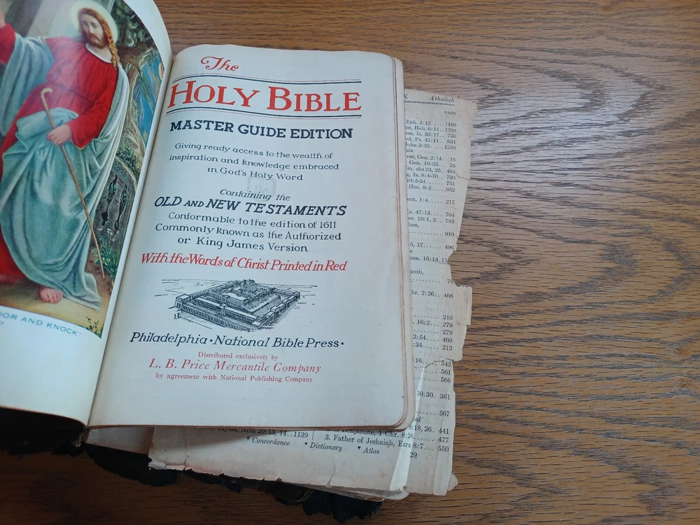 This vintage Holy Bible has a classic 1939 leather cover with red lettering, showing its well-loved history through gentle wear on the corners and binding. Despite loose pages, it's been carefully stored in a climate-controlled space, preserving its character. Perfect for collectors or those who appreciate aged religious texts with a sense of heritage. Reach out with any questions!