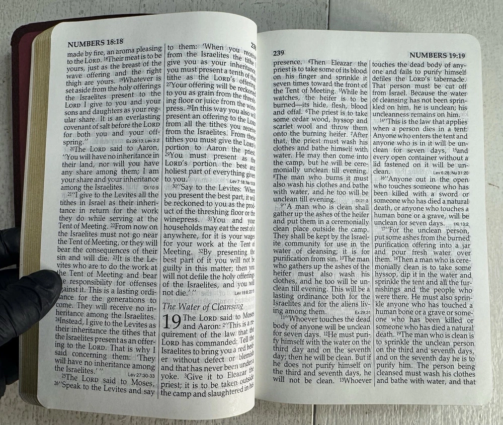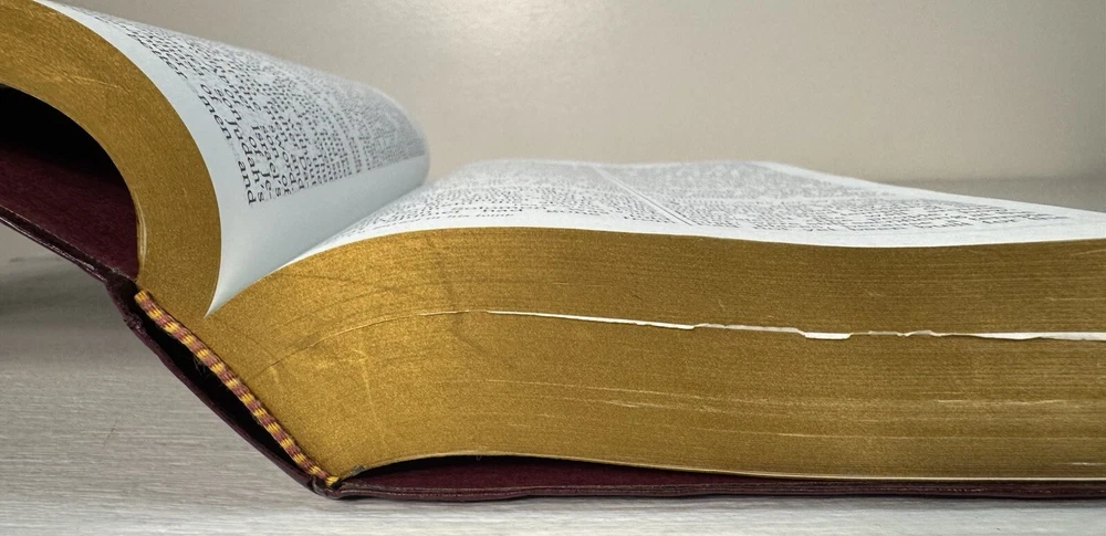 Very good copy! Near pristine. As advertised. Good price. Sent fast. Very reasonable, low shipping cost. Book was wrapped and packed securely: Bible bubble wrapped, protective/sturdy cardboard inserts front and back, waterproof mailer. Good job! Worry free transaction. THANKS SO MUCH!