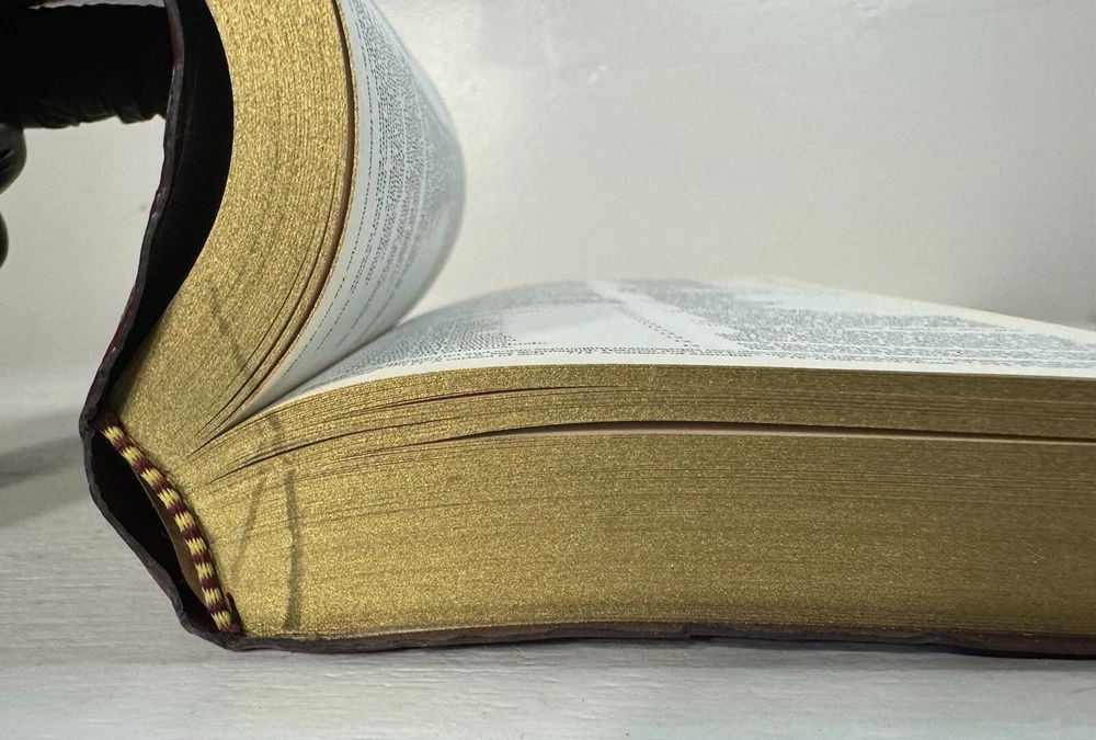 Very good copy! Near pristine. As advertised. Good price. Sent fast. Very reasonable, low shipping cost. Book was wrapped and packed securely: Bible bubble wrapped, protective/sturdy cardboard inserts front and back, waterproof mailer. Good job! Worry free transaction. THANKS SO MUCH!