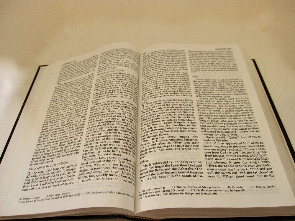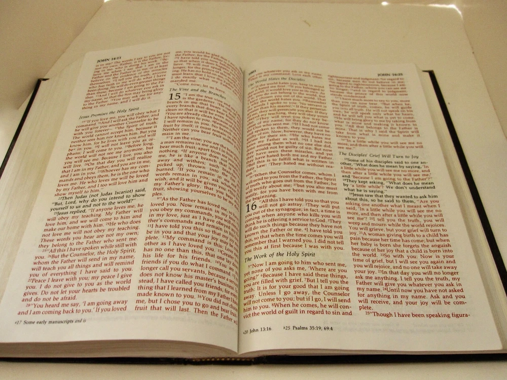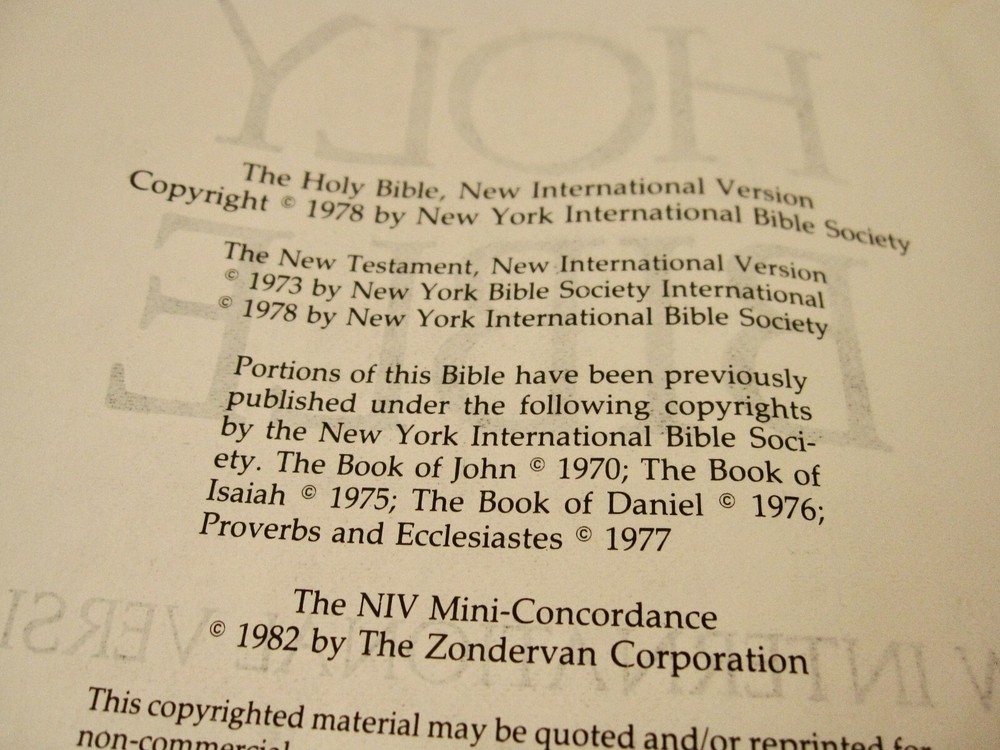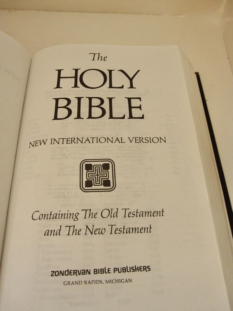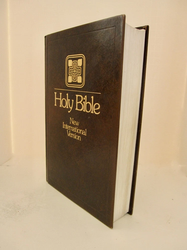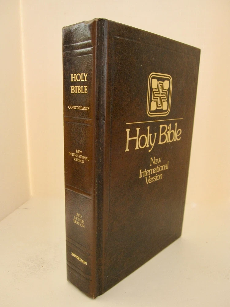 Holy Bible, original New International Version, 1970s edition with footnotes. NIV Zondervan Vintage Holy Bible in good condition, mostly clean pages, but occasional highlighting, see pics. There is some distressing on one corner of the cover, see pics. Nice, compact size that is easy to hold and read. Hard cover, brown hardcover. Smoke free, pet free PUBLISHED IN THE USA