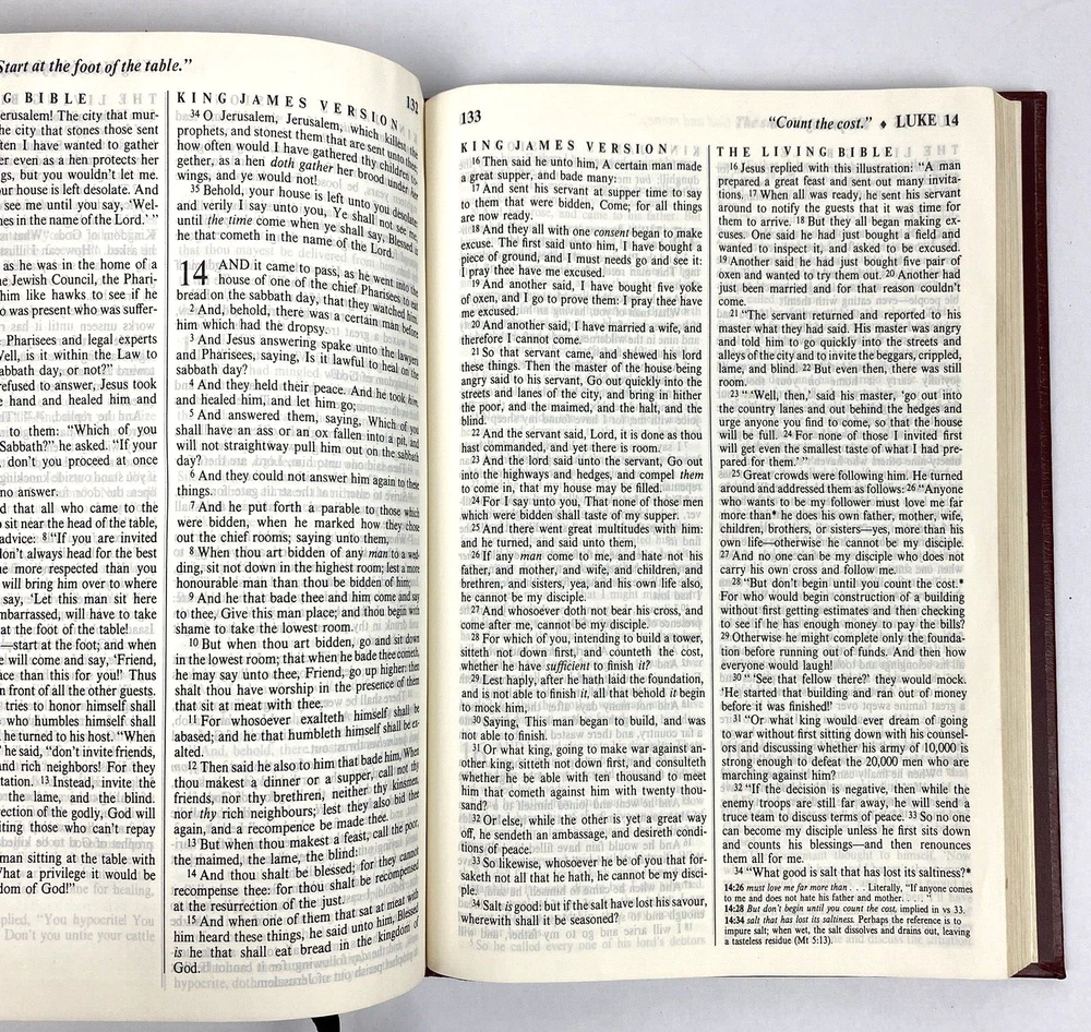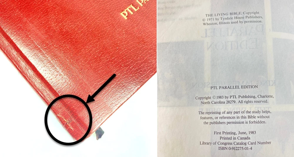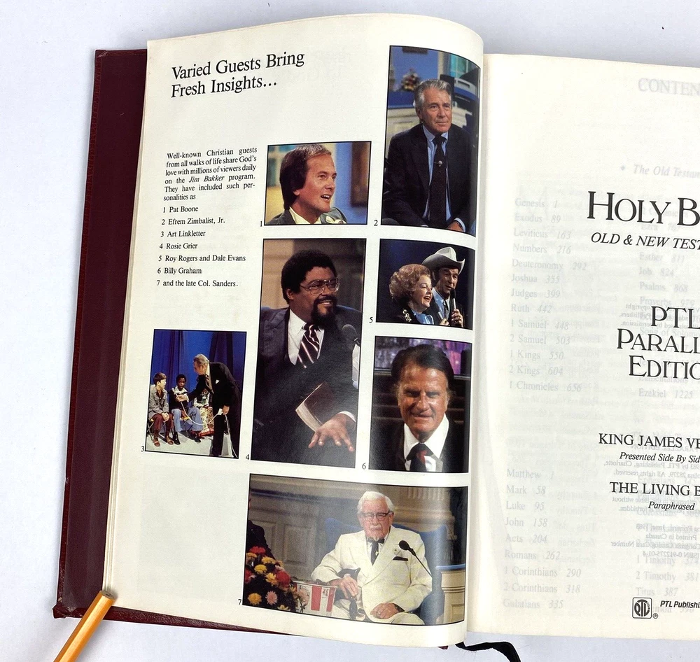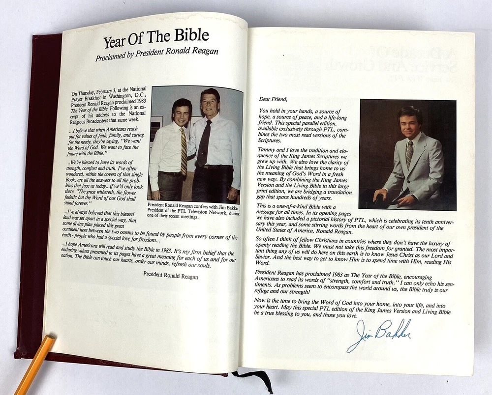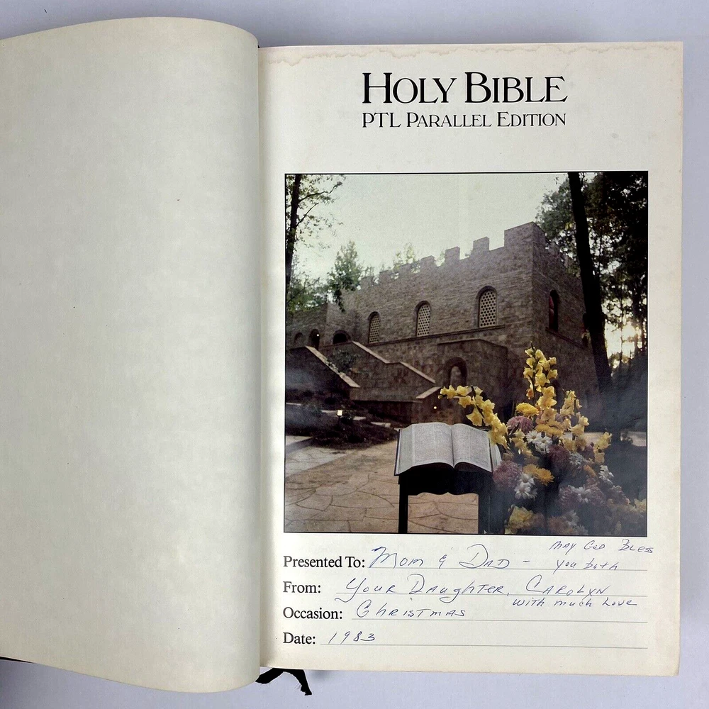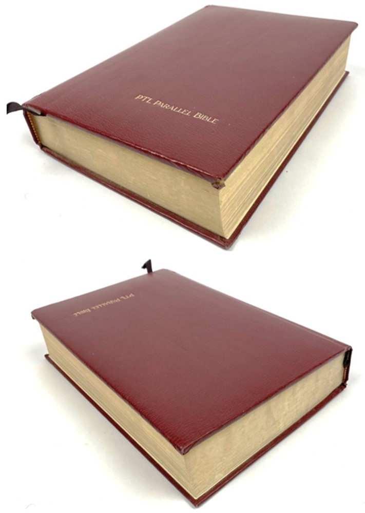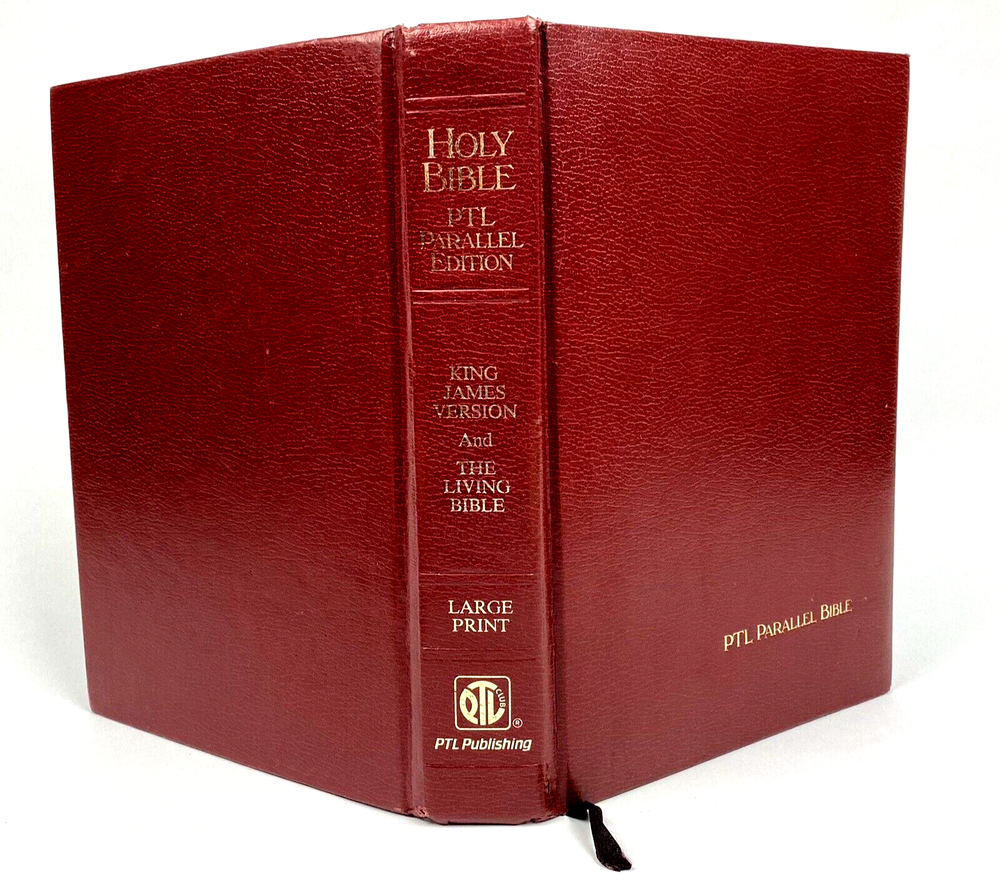 Holy Bible PTL Parallel Edition 1983 First Print King James & The Living Bible Jim Baker Measures Approx. 10 1/2" X 7 1/4" Condition is "Used". Please see our condition description & photos and use the photo close up feature to get a good look. Thanks! We have many Great Collectibles in our Store. Check us out we combine shipping! !>> https://www.ebay.com/str/emeraldchest