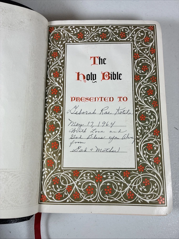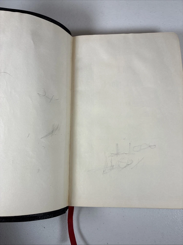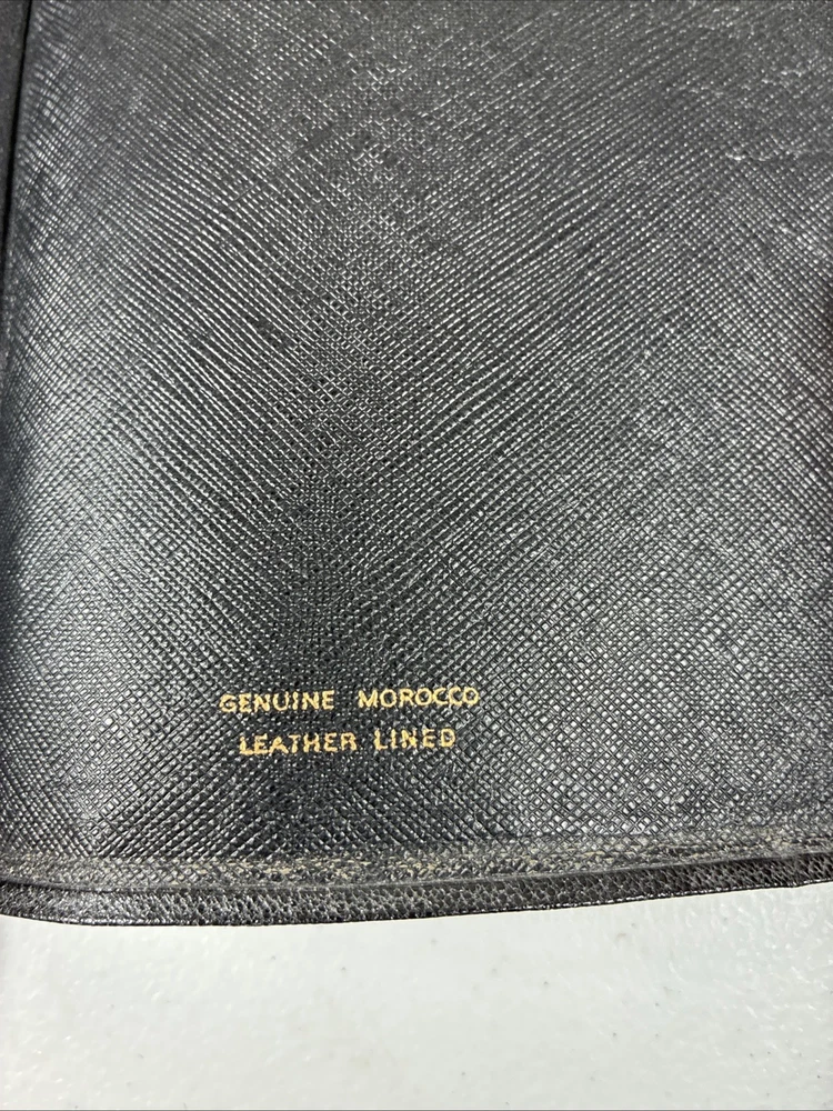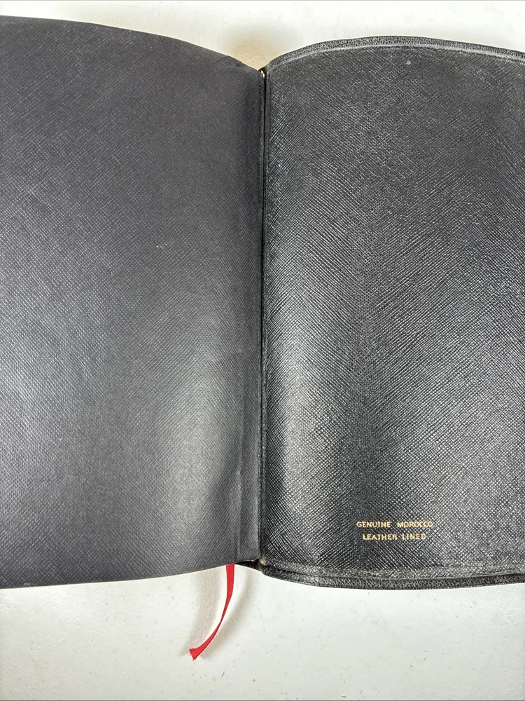 This Bible is a beautiful classic with rich Moroccan leather that feels amazing in hand. Despite a few taped pages and an inscription, it's in great condition—no markings or highlights. Perfect for collectors or anyone who appreciates vintage Bibles with timeless elegance!
