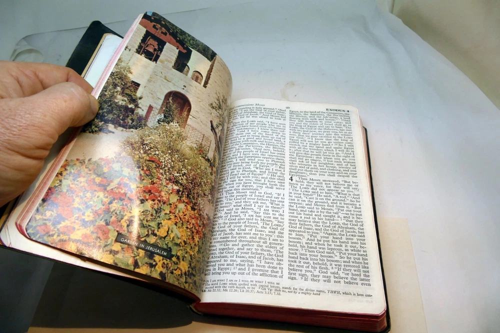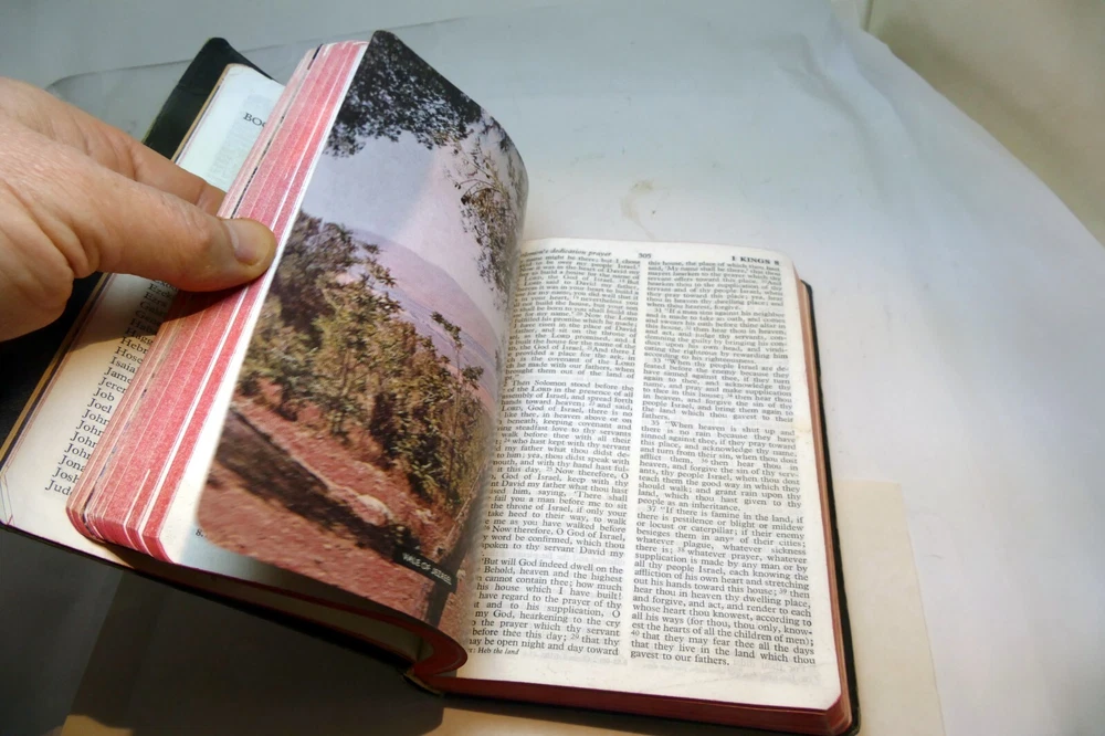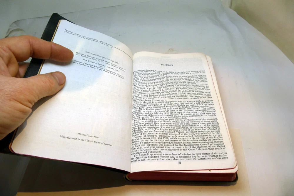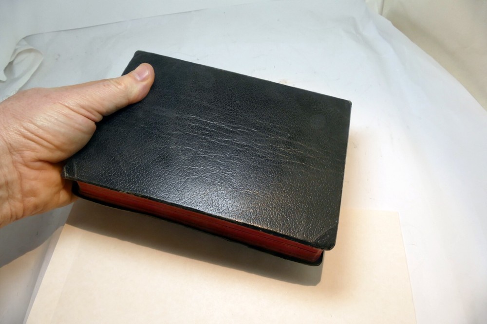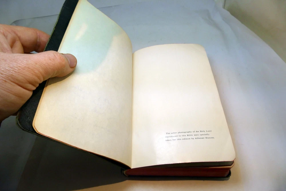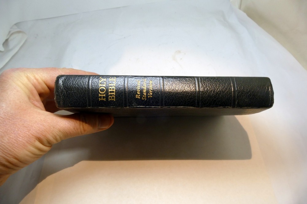 This Bible is beautifully bound in black faux leather with a classic, elegant look. The text is clear and easy to read, and the overall condition is great—no missing or damaged pages. The only minor issue is a handwritten name and address on the inside cover, but it doesn’t affect usability. Free US shipping is a nice bonus! Highly recommend for anyone looking for a sturdy, well-made RSV Bible.