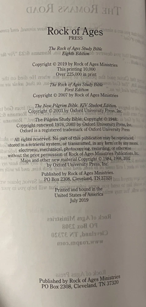 The Rock of Ages Study Bible, King James Version, offers an unparalleled selection of helps designed to encourage the study of God's unchanging Word. Quality Oxford materials and workmanship ensure you of a Bible that will withstand years of faithful use. Look at these great features: Over 975 in-text notes put background information at the reader's fingertips. 35 black and white in-text maps provide geographical context for understanding events portrayed in the Bible. 33 in-text charts make it easy to understand factual information. Asterisks by the key words in the text indicate that illuminating notes are available about them elsewhere in the Bible. Introductions with outlines set the stage for getting the most out of each book. Thousands of concise, bottom-of-page study notes address essential topics like Salvation, Baptism, Prayer and many more. Sectional headings and outlines are indicated within the text. A 250+ page Concordance shows the book, chapter, and verse location of the most prominent words in the KJV and supplies several words of the context in which each word is found. 16 pages of accurate, full color Oxford Bible maps (with index of places and natural features) that illustrate the Biblical world.