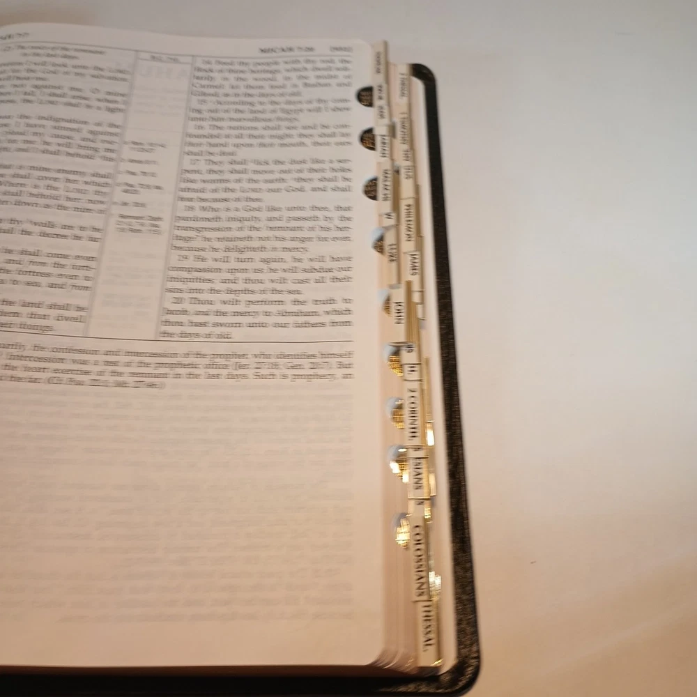 This lot is a Holy Bible Scofield Study Bible KJV LARGE Print. The Bible is i n used condition with writing on the presentation page. There is a some ding in the , please see photos. I am doing a clear out of our books we have too many to fit the space we have. We are a non-smoking household with cats.