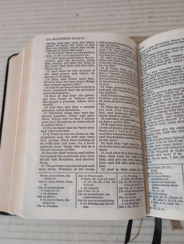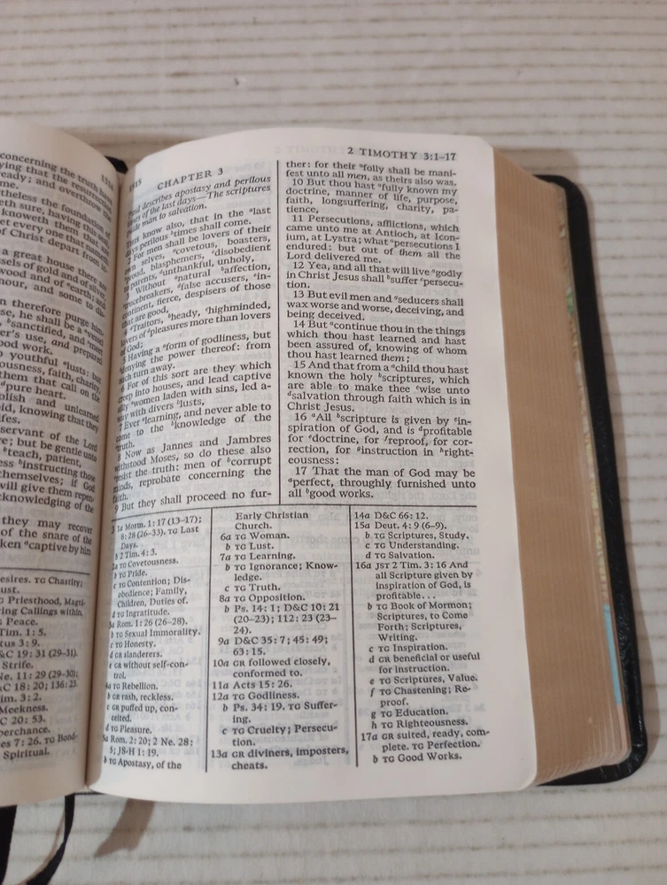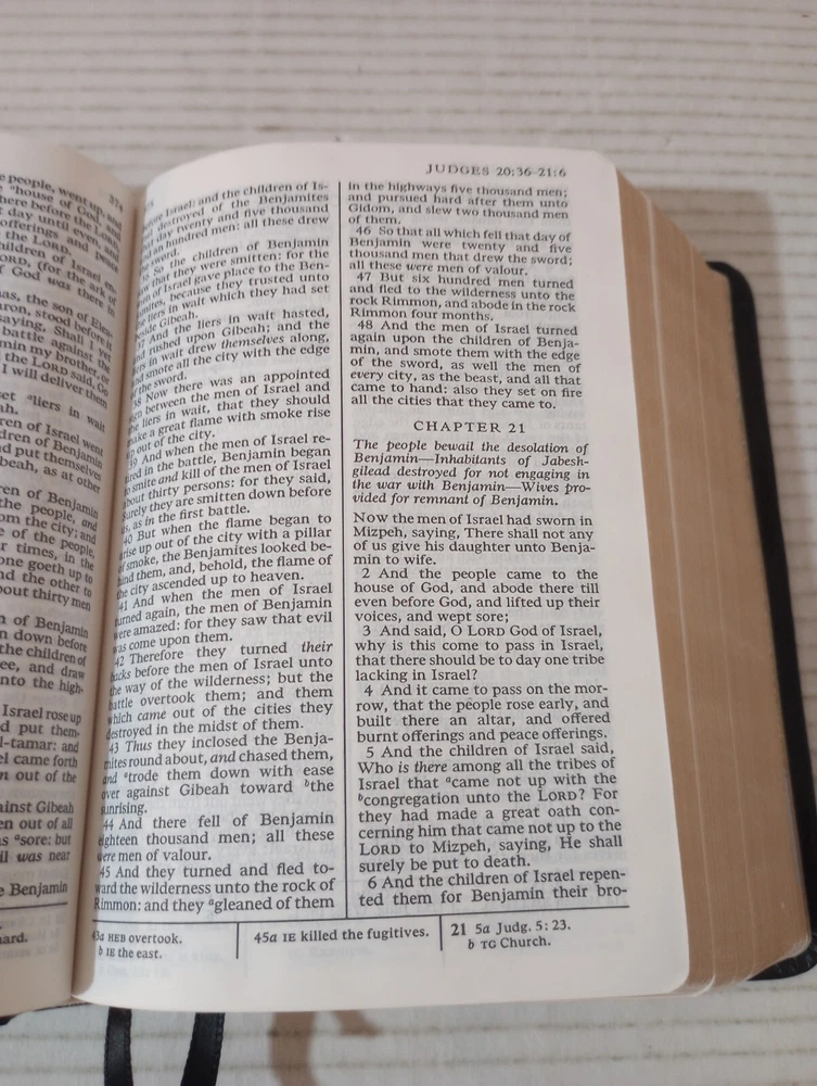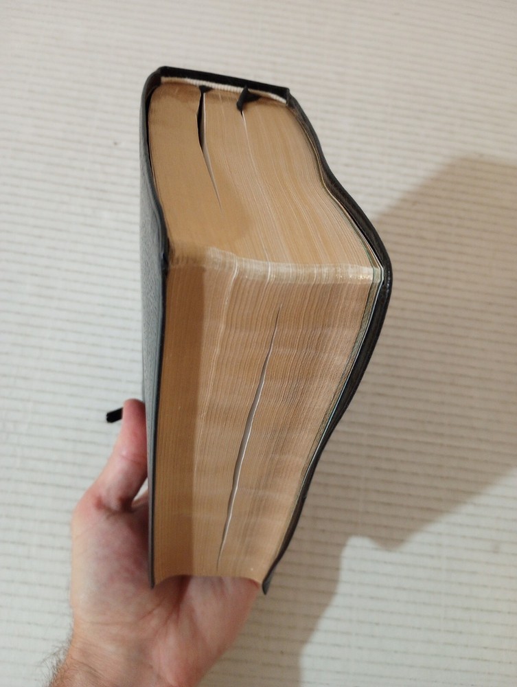 This Bible is in great condition—minimal wear on the cover, bright gilded edges, and no markings inside! The binding is sturdy despite a slight bend on the back. Shipping was fast, and the seller was super easy to work with. Perfect for study or gift-giving!