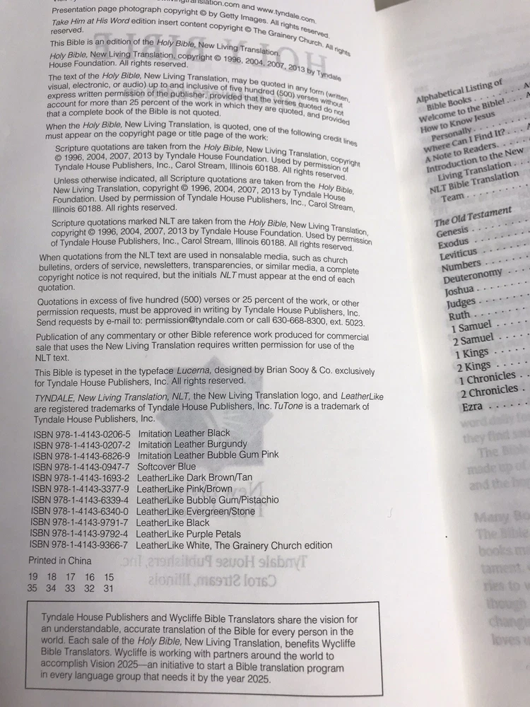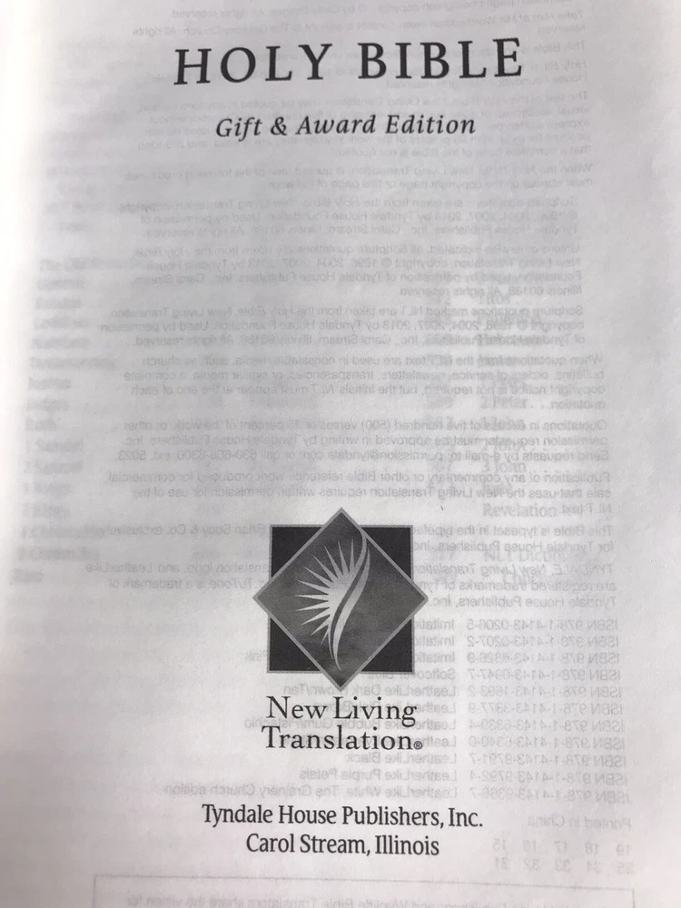 Holy Bible Tyndale New Living Translation 2013 Leather Like Brown Softcover Please note there is writing on the first page and some signs of use consistent with age and moderate use. Please also note that the text is small. See our other listings for more bibles. Five Star USA Seller, Fast Shipper We do not offer returns. Please see all photos /measurements and ask questions prior to purchase. However, if you have any issues or concerns with your order when it arrives please contact us directly. We are happy to combine shipping on multiple items from our store when possible and when requested.