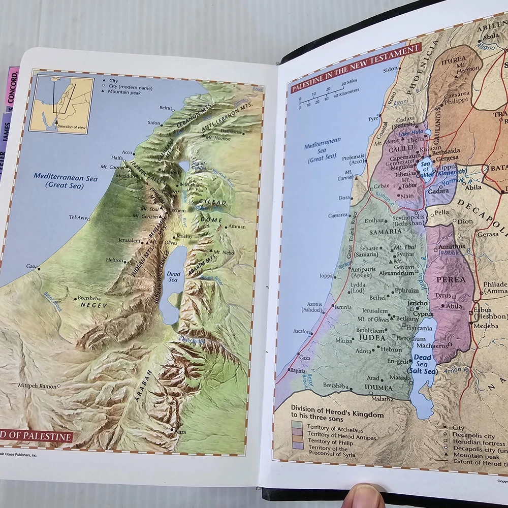 Holy Bible by Tyndale with Tabs (2007, Imitation Leather, Gift & Award) good condition the first page been torn see photo's fast shipping thanks for looking