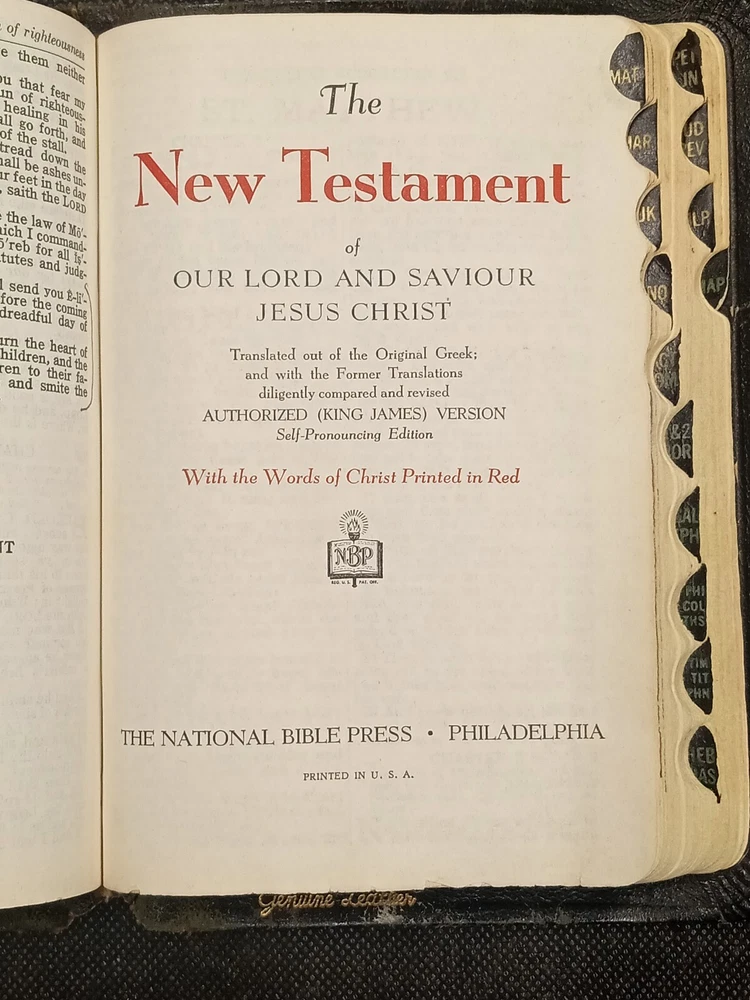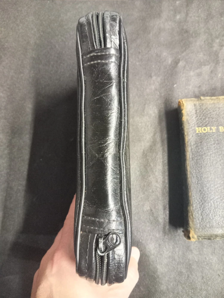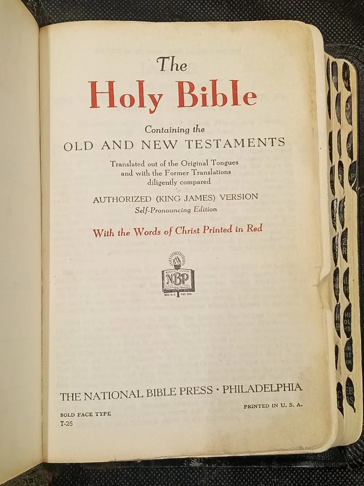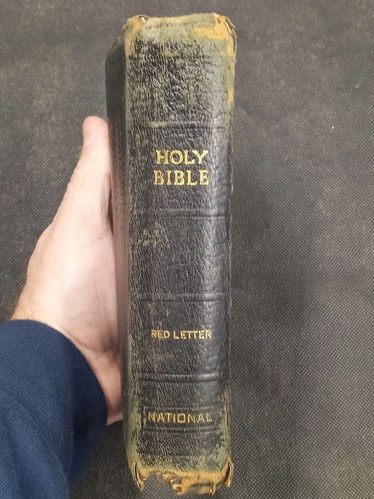 THANKS FOR LOOKING AT MY ADD WHAT I HAVE FOR SALE IS A PIECE OF REAL HISTORY (THE HOLY BIBLE)... MASTER GUIDE ADDITION RED LETTERS GENUINE BLACK LEATHER 1957 THE NATIONAL BIBLE PRESS PHILADELPHIA PRINT USA. COMES WITH A GENUINE VENTAGE LEATHER CARRYING CASE. PLEASE SEE PICTURE'S FOR DETAILS. THANKS. GOD BLESS. THE PRICE I SELL THIS WONDERFUL PIECE OF BIBLICAL HISTORY FOR WILL BE DONATED TO MY LOCAL CHURCH. THANKS AGAIN.