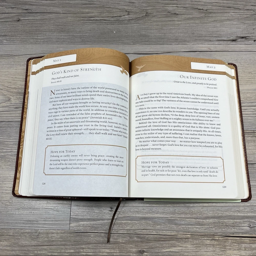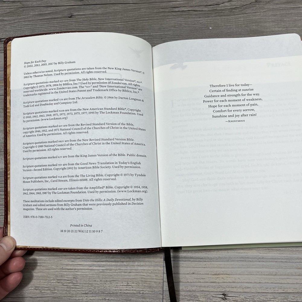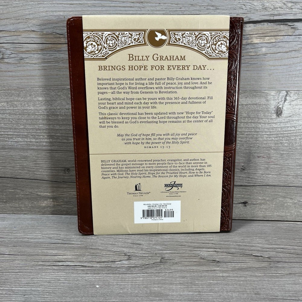 Hope for Each Day Words of Wisdom and Faith A 365-Day Devotional Billy Graham Pre-owned in excellent condition No writing or torn pages. FAST SHIPPING? Orders are usually shipped within 24 hours Monday thru Saturday Saturday afternoon and Sunday orders will ship Monday at the latest. DO YOU TAKE RETURNS? Most Items are free returns. However, check the return status under the return section on the listing page because some items due to being listed as having damage or other reasons are not returnable. Nevertheless, if you feel the description was inaccurate or have any concerns please message me and I will do the best I can to make things right. BUT I HAVE ANOTHER QUESTION! Please feel free to ask via eBay message. I do my best to accurately and thoroughly represent each item in images and condition description, but if there's any further information you require before purchasing please don't hesitate to ask and I'll get back to you asap. Thank You!!