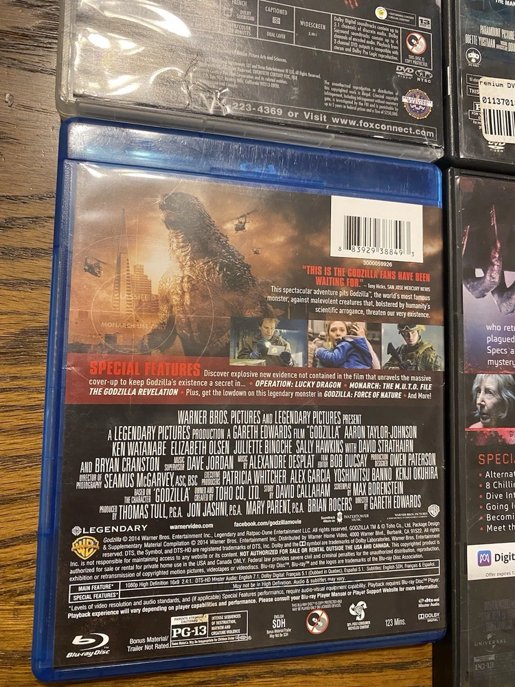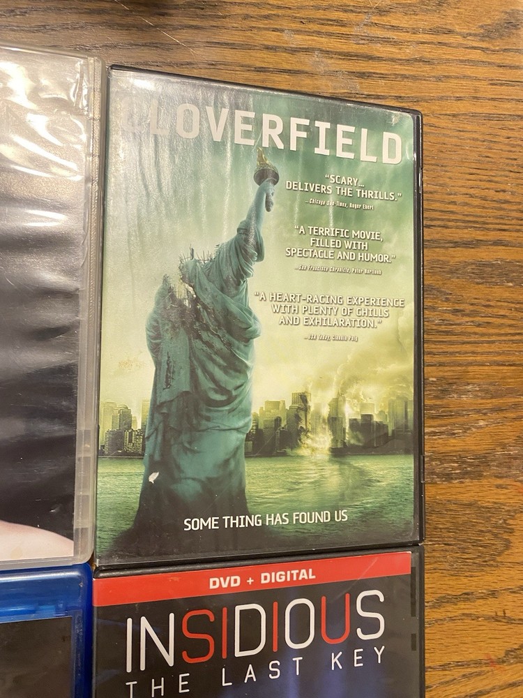 This horror DVD lot includes a variety of terrifying films such as "Insidious", "Godzilla", "Black Swan", "Cloverfield", and "Kaiju Demon". Each movie falls under the horror genre, promising viewers a thrilling and chilling experience. The DVDs are perfect for fans of the genre looking to add more suspenseful and scary movies to their collection. With a mix of different titles and themes, this lot offers a diverse selection of horror films to enjoy at home.