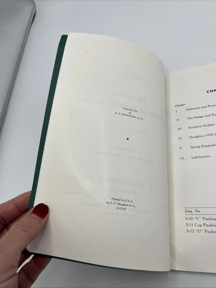 For sale is a good condition HOUGHTON HYDRAULIC & PNEUMATIC PACKINGS LEATHER HANDBOOK 1957. Previous owner's name is written on the first page. See all photos for details of any imperfections. The photos are the exact item you will be receiving. Item is sold as is. The lot will be shipped USPS Media Mail (many of the items with size and or weight will have shipping options in the listing for you to choose). If you choose local pick-up this will be porch pick-up at my home. If you have any questions related to shipping please send me a message. Shipping I will always include original packaging when it's available. Many of the items I sell are of high value and fragile. Great care is taken to package these items in a way that will ensure their safety during shipment. Please ensure that the mailing address on record with eBay is complete and correct. I do not charge for boxes, packing material, tape or other handling items. Shipping outside of the contiguous U.S. is via eBay's Shipping Program, and all associated charges will be determined by eBay. If you feel shipping rates are high for your distance please message me with your zip code. This is especially for west coast states where flat rate boxes would possibly be cheaper. I will send your purchase within my handling time and due to eBay policies I'm unable to hold items for a later date of shipment. Offers I spend considerable time researching my listings for a competitive and fair asking price. Many of the listings have offers available to you. This creates flexibility. Contact Before you bid and/or buy, please read the description and review the pictures carefully. Do your research. Contact me through eBay if you should have any questions about my listings or need additional pictures on any of the items. If you should ever find an error in any of my listings, please let me know so that I can correct it. I make every effort to be accurate and honest in my descriptions. I research these items as thoroughly as I can before listing. Often, the items are retired and information is scarce. I welcome any additional information you may have as it can only improve my performance as a seller. The very last thing I want is for anyone to think I've intentionally misrepresented an item I've sold to them. I much prefer transparency and full disclosure. For that reason, I inspect closely the things I list. I describe and photograph my items in detail including and especially any defects I might find. I do this so that I can sell, and you can buy, with confidence and peace of mind. The item I describe and photograph is the item I will ship to you. Please note: Every effort is made to render color accurately in my photos. However, colors look different under different lighting conditions and will appear different across various electronic media. For that reason, the colors in the photos should be considered representational. Similarly, most of the items I sell here are handmade and hand painted by different artists in various time periods. Unlike mass-produced ware, allowing for some minor variation in both color and design from pieces you've seen, or may already own, is only reasonable. No two pieces are exactly identical, although, by and large, the precision between like items is uncanny. I stand in awe at the level of artistry exhibited by every one of these crafts persons. Most of the crystal and porcelain items I list I've acquired from estates. A few I've acquired at auctions. In either case, they are pre-owned items, and with rare (and noted, see above) exception, they are in excellent condition with virtually no observable wear. But please know that there may exist some very minor but certainly acceptable wear commensurate with the age of the piece. I am neither selling nor pricing these as new items, even though they are often in like-new condition. A note of warning: Do NOT contact me seeking to strike a deal outside of eBay on an active listing. This is a violation of eBay policy. Thank you for looking and shopping at Vintage by Jen Shop. I hope you have found something irresistible amongst them. I want to provide you with the best service I possibly can and your feedback is both important and greatly appreciated. If you have any concerns or issues please message me. Happy Shopping!