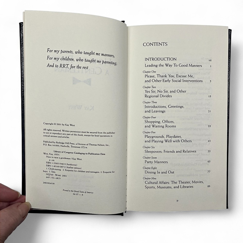 "How To Raise A Gentleman" by Kay West, a time-honored guide that delves into the art of cultivating grace and dignity in today's world. Published by Brooks Brothers in 2001 and bound in sophisticated faux leather, this hardcover edition is more than just a book; it's a compass for parents seeking to instill empathy and respect in their sons. With 214 pages of insightful content, this 8th printing of the first edition is a valuable addition to any self-help collection. 8" height and 5 " width. Written in English and produced in the United States, it stands as a testament to the enduring values of spirituality and help, offering guidance that transcends generations. Condition: Very Good ( back has some writing on it. SEE LAST PICTURE) * Items are all carefully examined, measured, photographed and stored in a smoke free environment. * I do my best to describe accurately and take measurements at the time of listing. * Items typically ship same/next business day except if it go's over the weekend or a Holiday.
