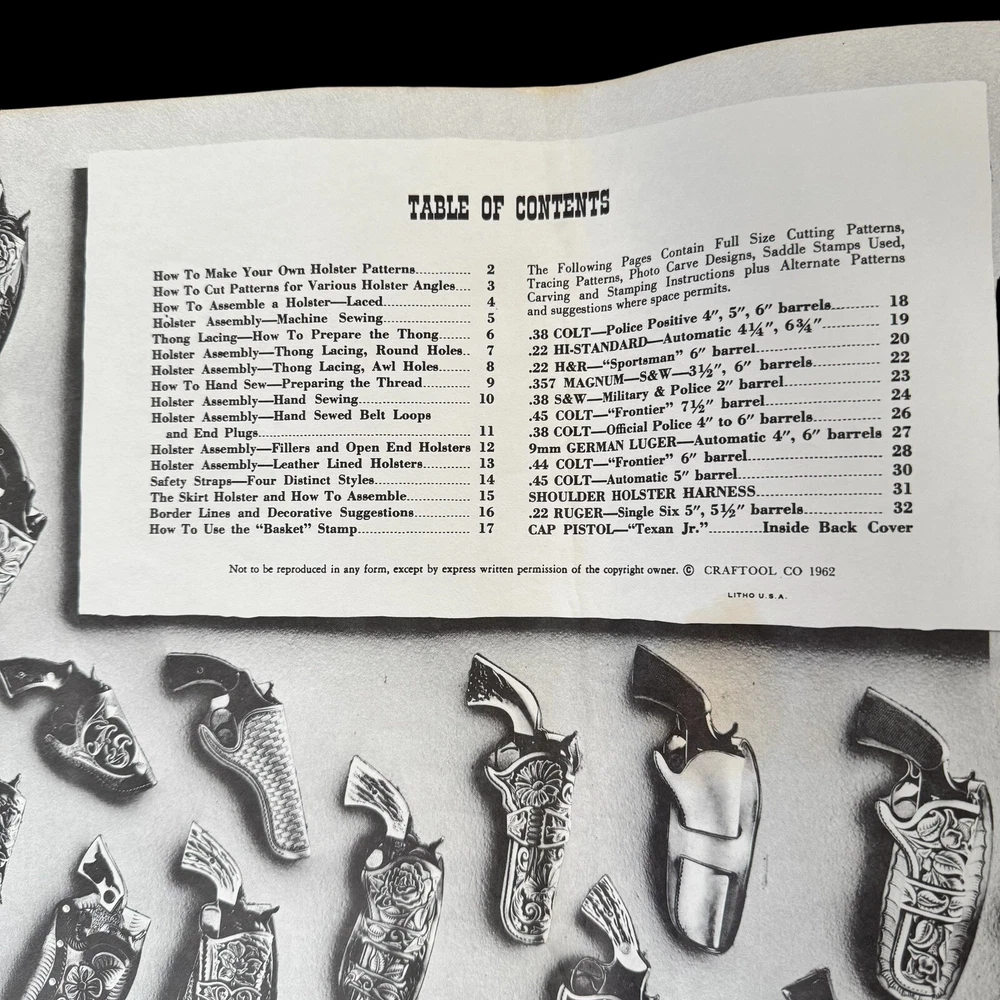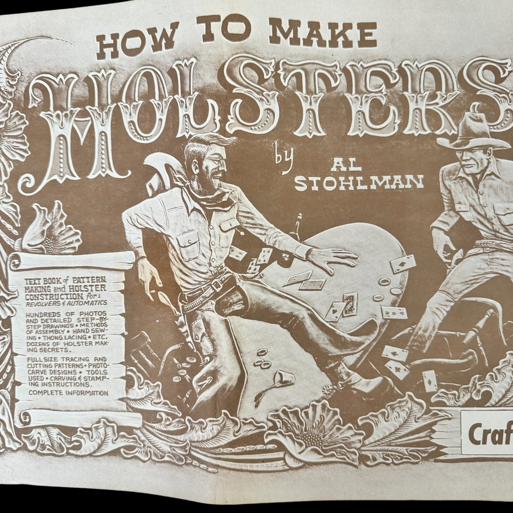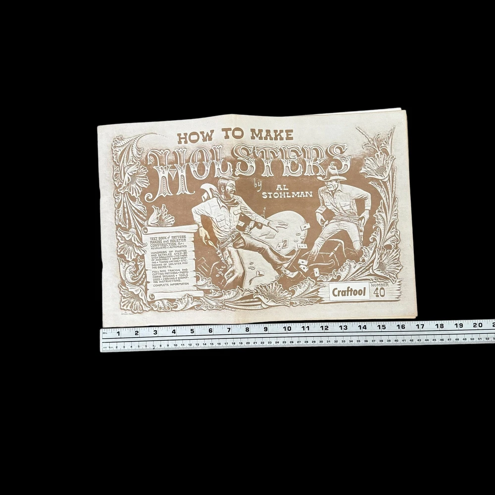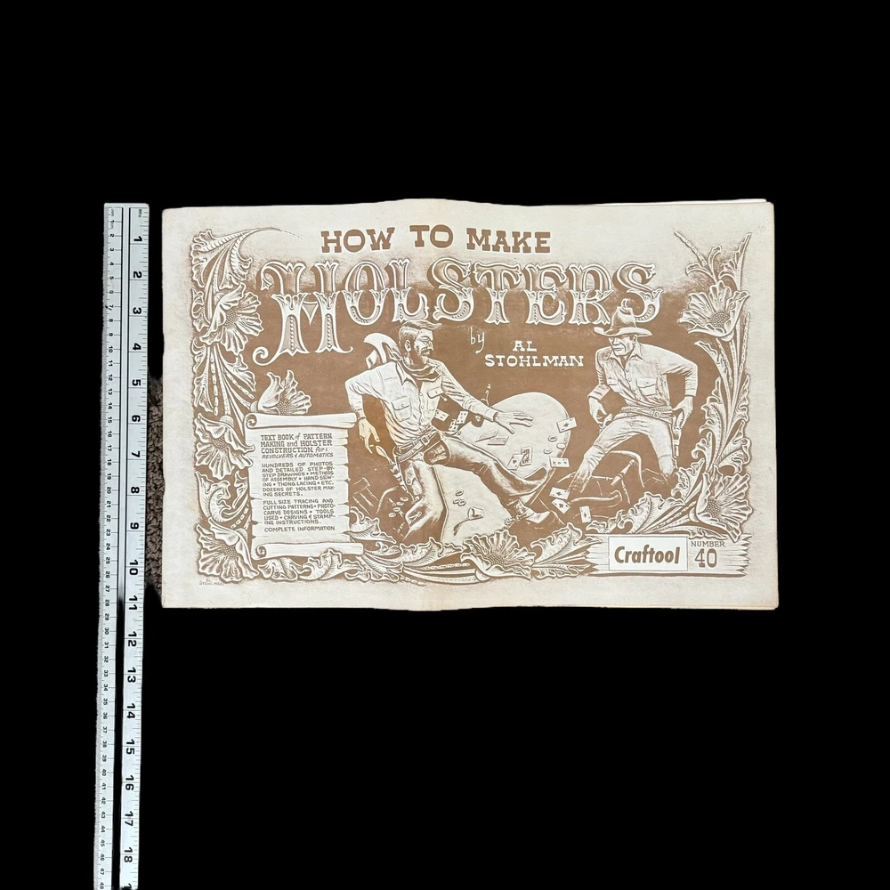 How to Make Holsters by Al Stohlman Stylecraft No 40 Leather Gun Holster Making Guide Book / Magazine 17" x 11" 32 Pages Illustrated English Condition: Preowned and vintage from 1962. Some aging , stains, scuffs and yellowing of paper consistent with age and use. It is folded from the middle which has caused a crease. It will be shipped folded. All pages are intact and attached to cover Books-3
