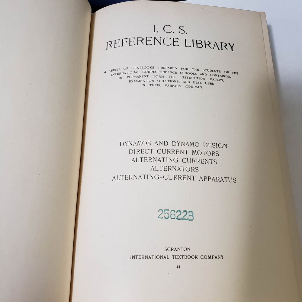 I.C.S. Reference Library 1905 #44 Design of Dynamos & Motors AC Current HC Book #44 specializes in: Designs of Dynamos and Motors Alternating Currents Includes Lessons and Exams This book is HEAVY and...