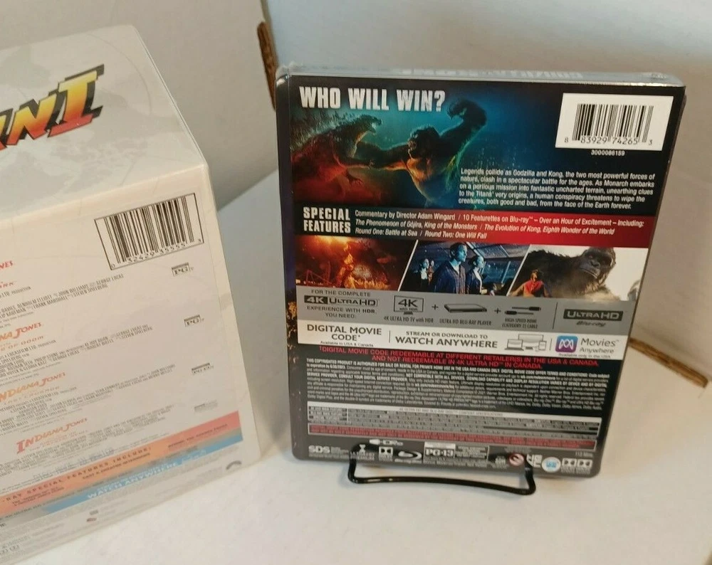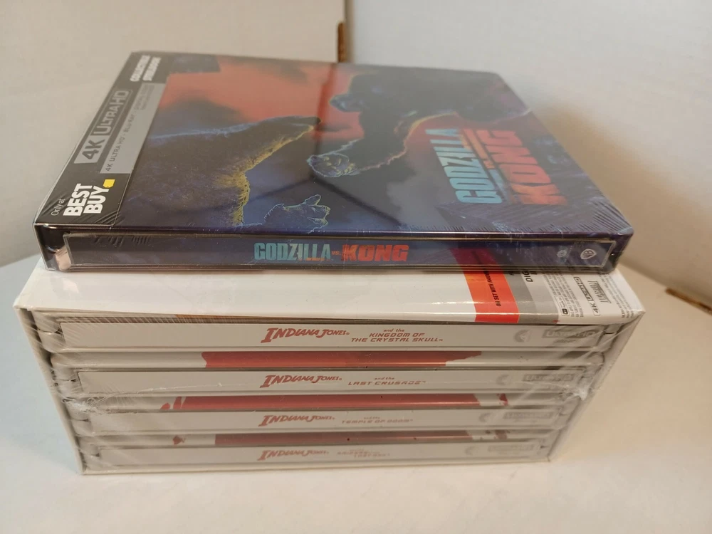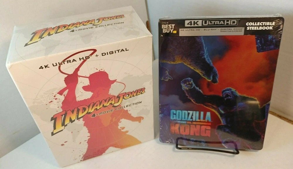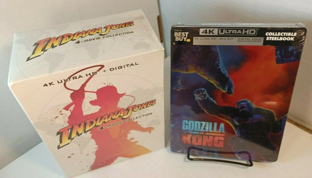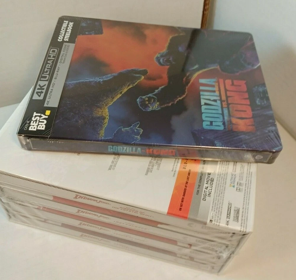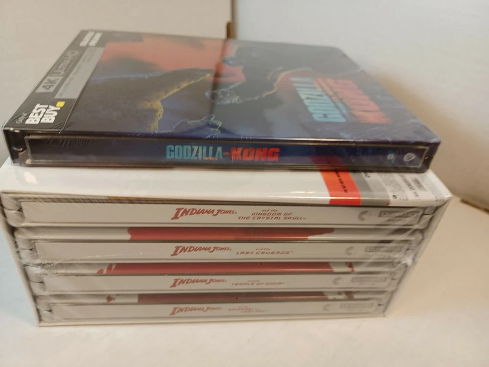 *** Indiana Jones + Godzilla v Kong Steelbooks (4K Blu-ray) *** Brand NEW (Sealed) ** Buyers Beware – Digital Code included but codes expire after a certain time. Please check the digital code insert for expiry date. ** No Damage - Mint Condition Box Shipping within One Business Day with USPS Tracking Number