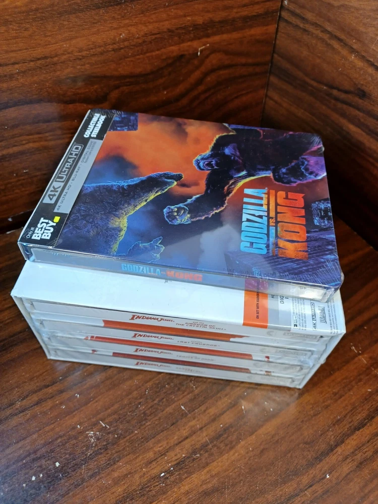 ** Like New (NOT Sealed) – Never Used ** ** Special Collector Edition Steelbook Packaging ** ** Indiana Jones 4 Movie Collection ** ** Godzilla v Kong ** ** Digital Codes NOT included ** ** READY TO SHIP NOW ** ** Same Business DAY Free shipping ** ** Tracking Number Provided **