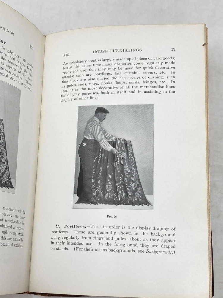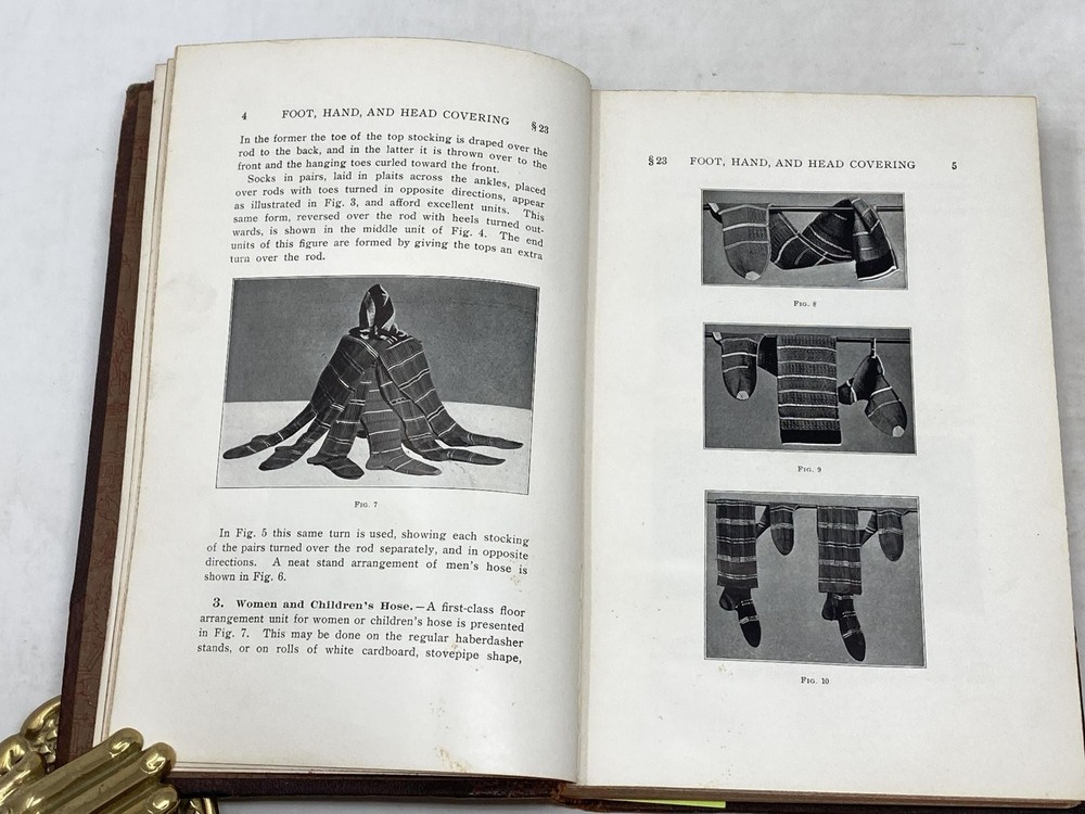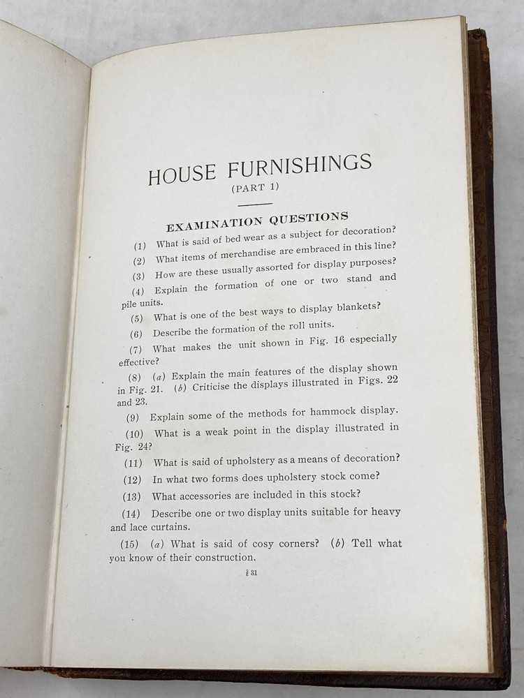 A TEXTBOOK ON MERCANTILE DECORATION: FOOT, HAND, AND HEAD COVERING MEN AND WOMEN'S FURNISHINGS HANDKERCHIEFS LINENS HOUSE FURNISHINGS Author: International Correspondence Schools Title: A TEXTBOOK ON MERCANTILE DECORATION: FOOT, HAND, AND HEAD COVERING MEN AND WOMEN'S FURNISHINGS HANDKERCHIEFS LINENS HOUSE FURNISHINGS Publication: Scranton, PA: International Textbook Company, 1903 Description: Leather-bound. Small quarto. Half leather over brown buckram-covered boards. (9 in. x 6 1//4 in.)Leather scuffed and worn, especially to spine, but book solidly bound. A virtually encyclopedic compendium of the ideal, proven methods to display eve3rything from handkerchiefs to hammocks to hardware. LOADED with photographs. In our opinion one of the coolest offerings by the prodigiously published International Correspondence Schools in Scranton, Pennsylvania. Examination questions at the end, with such questions as: What is said of Bedware as a subject for Decoration? Explain some of the Methods for Hammock Display? How are Plants and Animals Imitated with Handkerchiefs? Fair. Seller ID: 88450 Subject: Business Aardvark Rare Books Eugene, OR We work hard to make your Bookbuying Experience safe, easy and fun. Aardvark Books is a proud member of the ABAA (Antiquarian Booksellers Association of America) and IOBA, Independent Online Booksellers Association. Ezra is also an accredited and Qualified Appraiser of Books and Manuscripts, with a designation from the ASA (American Society of Appraisers), with considerable Archive experience as well. Shipping All books shipped to US destinations are sent via the US Postal Service. Faster shipping is available, please ask before paying. We will combine shipping on items purchased at the same time in order to help reduce costs. International shipping is also available. Please inquire for a shipping quote before ordering. This listing was created by Bibliopolis.