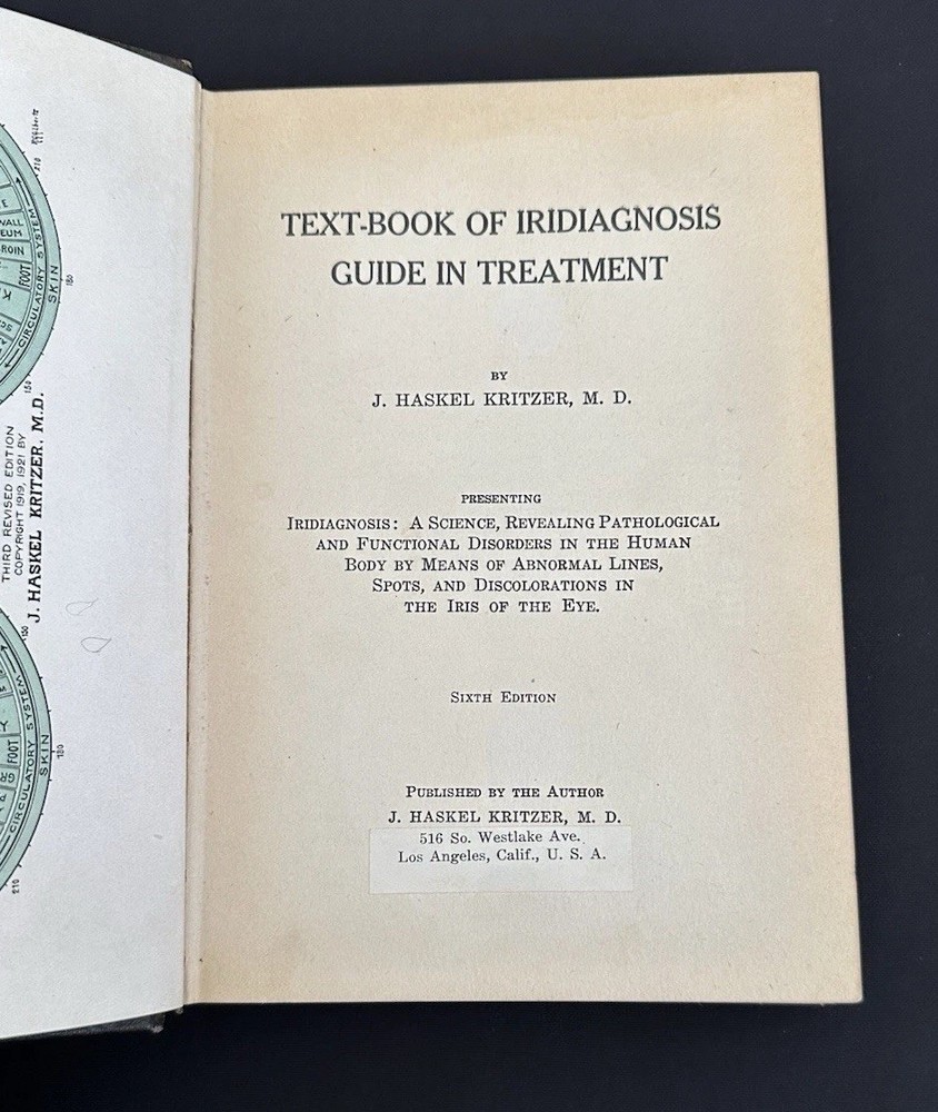 Kritzer, J Haskell, Text-Book of Iridiagnosis Guide in Treatment 1924 Eye Health Very good condition, unmarked, firm binding - see photos for details and please reach out if you have any questions. Th...