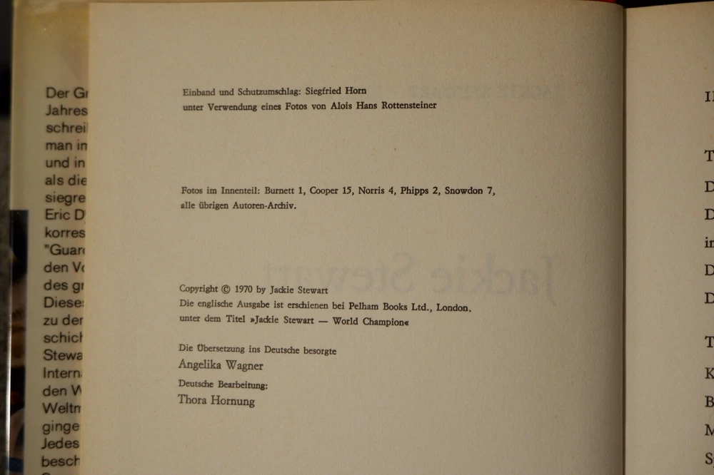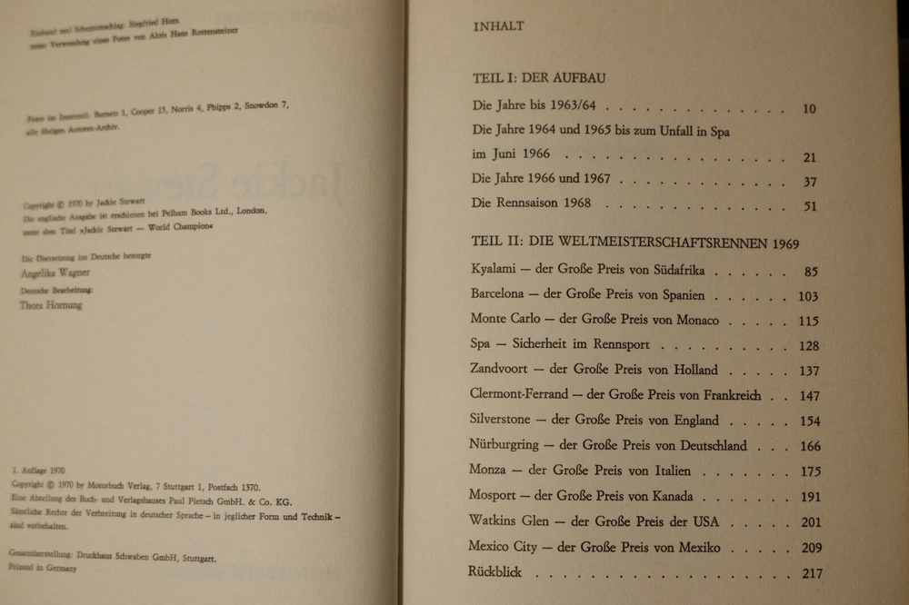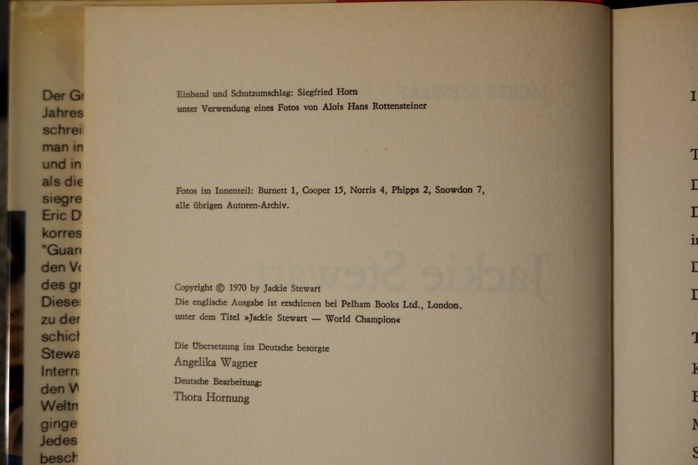 Title: Jackie Stewart. Publisher: Stuttgart, Motorbuch Publication Date: 1970 Binding: Hardcover Dust Jacket Condition: Dust Jacket Included HAND SIGNED BY JACKIE STEWART WITH A MESSAGE "BEST WISHES"