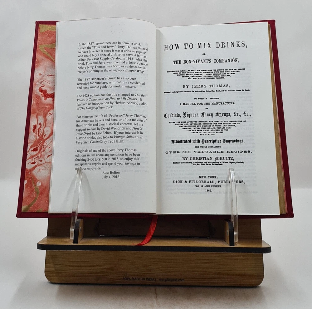 GYAN BOOKS INTRODUCING A REMARKABLE LEATHER-BOUND EDITION, METICULOUSLY CRAFTED BY THE ESTEEMED INSTITUTION " RARE BIBLIO". This title holds the distinction of being a Bestseller, highly praised by readers across the GLOBE. We are thrilled to present this literary gem exclusively to our elite readers, meticulously encased in our one-of-a-kind Premium Leather Binding . Following your order, we purchase the book from the original publisher/distributor and embark on the process of rebinding to elevate this book to a Luxurious Reading Style. A UNIQUE LEATHER-BOUND BOOK FOR ELITE READERS/COLLECTORS OF OLD RARE AND BESTSELLING BOOKS. For the Binding, we use GENUINE LEATHER , graced with opulent GOLDEN LEAF DETAILING on the SPINE , FRONT COVER , AND BACK COVER , ADDED BY EDGE GILDING . ABOUT US ★ We deal into reprinting of the master pieces crafted by authors around the world. ★ We are proud to say that we have a collection of over 25 million books and our collection includes books that are as old as 200 years and hence are considered as RARE BOOKS. ★ We are pioneer in this field having experience of 40 years. ★ We also undertake printing and Leather Binding jobs of other books. ★ Thesis printing and Leather Binding is one of our important Service ★ Many publishers and author approach us for their books to bind in our Unique leather binding format for their special customers. ★ Our craftsmen are active in this job since generations. ★ Restoration of old books is our expertise ★ We are known by our Customization options. ★ We have many leather color options in our bucket. ★ The whole process is done manually so that it gives you the same feeling of old book. OFFERS & SPECIALIZATION: ★ SPECIAL DISCOUNT FOR BULK ORDERS, PLEASE CONTACT US. ★ CHOOSE ANY LEATHER COLOR OF YOUR CHOICE WITHOUT ANY EXTRA CHARGES, JUST CLICK ON IMAGES FOR OPTIONAL COLORS AND INFORM US YOUR CHOICE THROUGH MAIL WITH COLOR CODE. ★ WE OFFER A DIVERSE RANGE OF LEATHER COLORS, INCLUDING RED , GREEN , BLUE , BLACK, MAGENTA , YELLOW , TAN . WE ALSO OFFER MULTI-COLOR LABELS WITH THESE BEAUTIFUL BOOKS ON SPECIAL REQUEST. ★ AN ORIGINAL LEATHER IS BEING USED FOR BINDING THIS BOOK WITH GOLDEN LEAF PRINTING AND DESIGNING ON SPINE, FRONT AND BACK OF THE BOOK WITH EDGE GILDING . Points to note before booking order: ★ In case of multi volume sets, please note that the above listing is for a single volume only. (To order multiple volumes, please contact us separately). ★ We urge you to appreciate that our Leather-Bound Books are Genuine works of art and are Handcrafted by our Professional Craftsmen. Thus, requiring time and care to reach the pinnacle of excellence. ★ We Prepare the Book after receiving the Order. ★ We usually take 30 business days as handling time to dispatch shipment. ★ We request you to understand that these leather-bound books are work of art and hence require time to go through different process to be the master pieces that they are. ★ We usually take 30 business days as handling time to dispatch shipment. We consider special request for a special occasion. ★ Craftsman based in India, prepared this book and shipped from different stock locations around the Globe. Product Details: - ★ Complete Title: Jerry Thomas Bartenders Guide 1862 Reprint: How to Mix Drinks, or the Bon Vivant's Companion by Thomas, Jerry & Bolton, Ross [PREMIUM LEATHER BOUND] ★ Author: Thomas, Jerry & Bolton, Ross ★ Language: English ★ No. Of Pages: 250 ★ Year: 1862 ★ We provide ?Extra customization*? on request with additional charges. ★ We also undertake printing and Leather Binding of all the books. ★ Product Disclaimer: Please be aware that because leather is a natural material, slight discoloration or change in texture may be visible. About the Book: - The 1862 Bartenders Guide is the FIRST cocktail book, in its FIRST version, now in an affordable reprint as it first appeared, in Hardback. It was first known as "How to Mix Drinks, or the Bon Vivant's Companion" and published in 1862 with "A Manual for the Manufacture of Cordials, Liquors, Fancy Syrups, etc, etc" by Christian Schultz appended at the back, since any good bartender was supposed to know how to both mix and make. It includes drinks that we still know today like the Mint Julep and lesser known drinks like Absinthe Water, Flip, and Fix. One can use it to impress your friends making the Balaklava Nectar, Locomotive, and Blue Blazer. Originals of the 1862 Jerry Thomas Bartender's Guide have been costing $2,000 in 2016, so enjoy this inexpensive reprint and spend your savings in studious enjoyment!