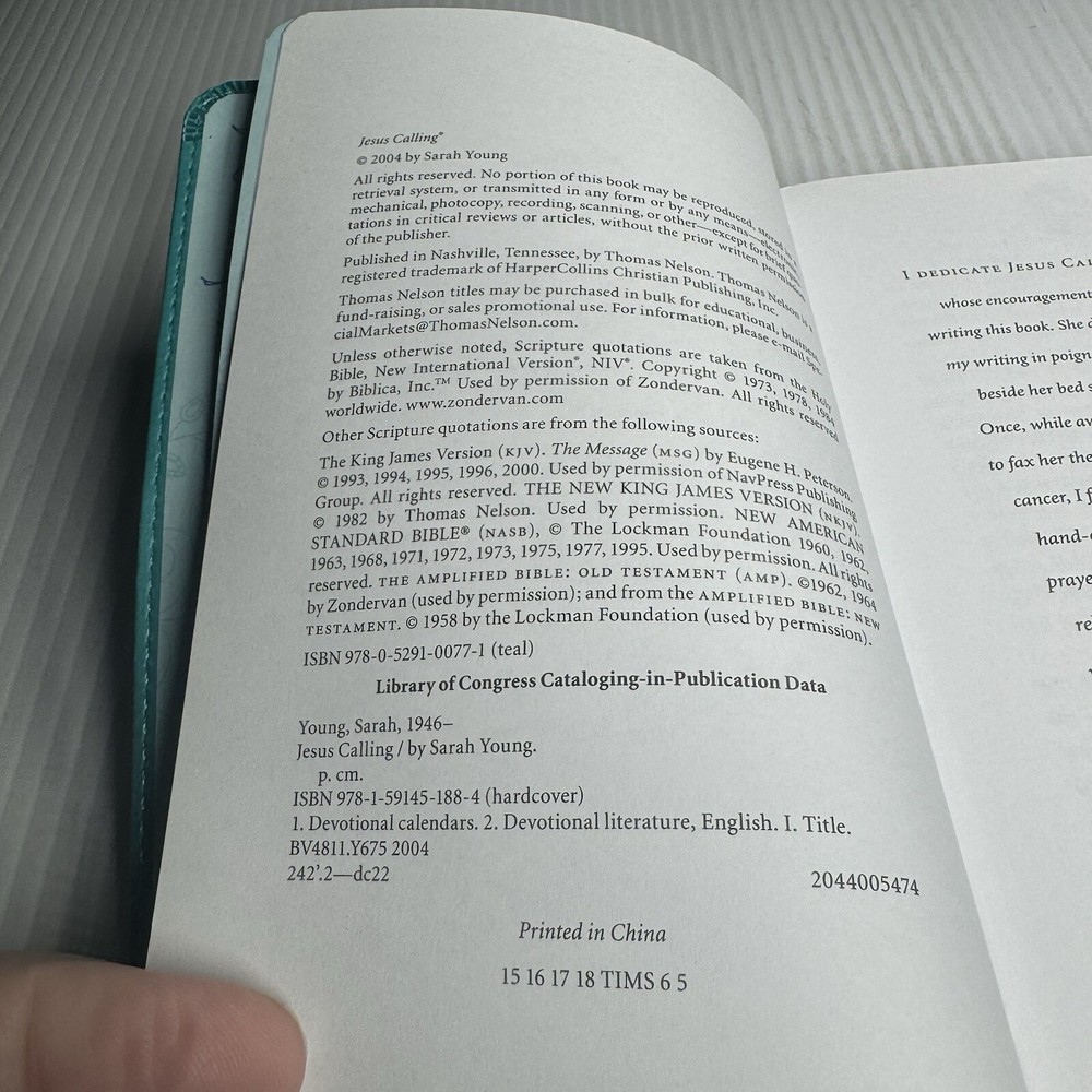 | Book Title | Jesus Calling: Enjoying Peace in His Presence |