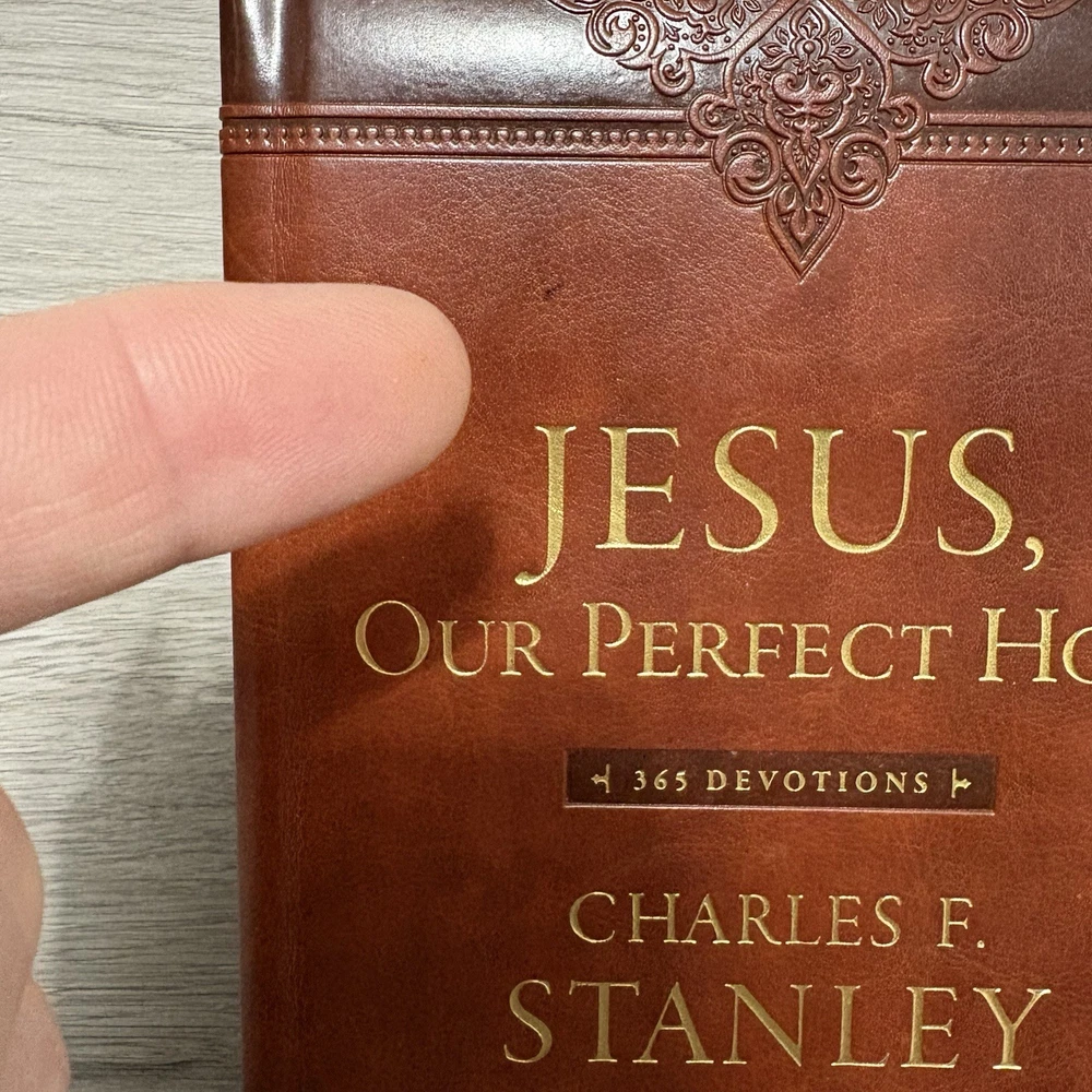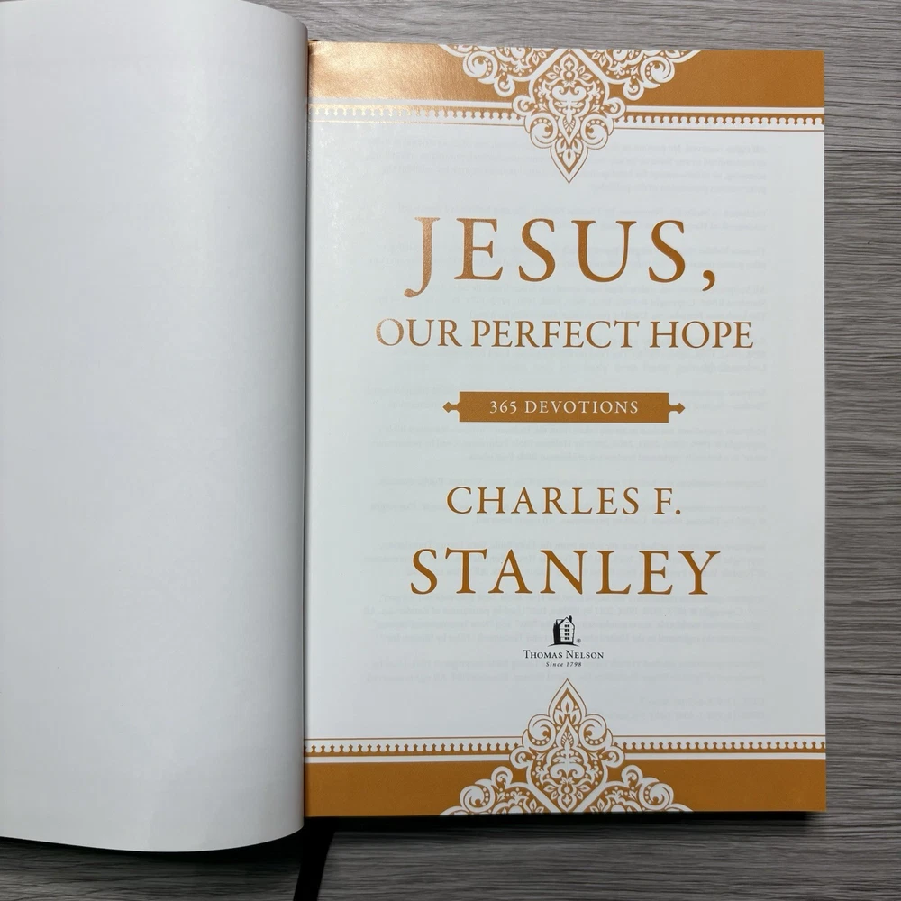 Jesus, Our Perfect Hope by Charles F. Stanley. 1. WE DO NOT USE STOCK PHOTOS. These are actual photos of the book that you will receive. 2. This book is in good condition per the photos. This book has: - some staining and discoloration to the text block - a stain on the front cover 3. We ship our books with care, just like we would like to receive them. 4. Please see the photos for condition and message me with any questions or if you would like to see any additional photos.