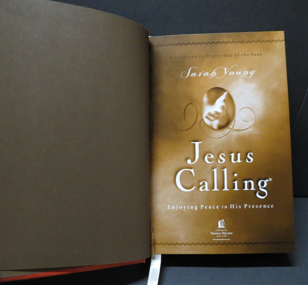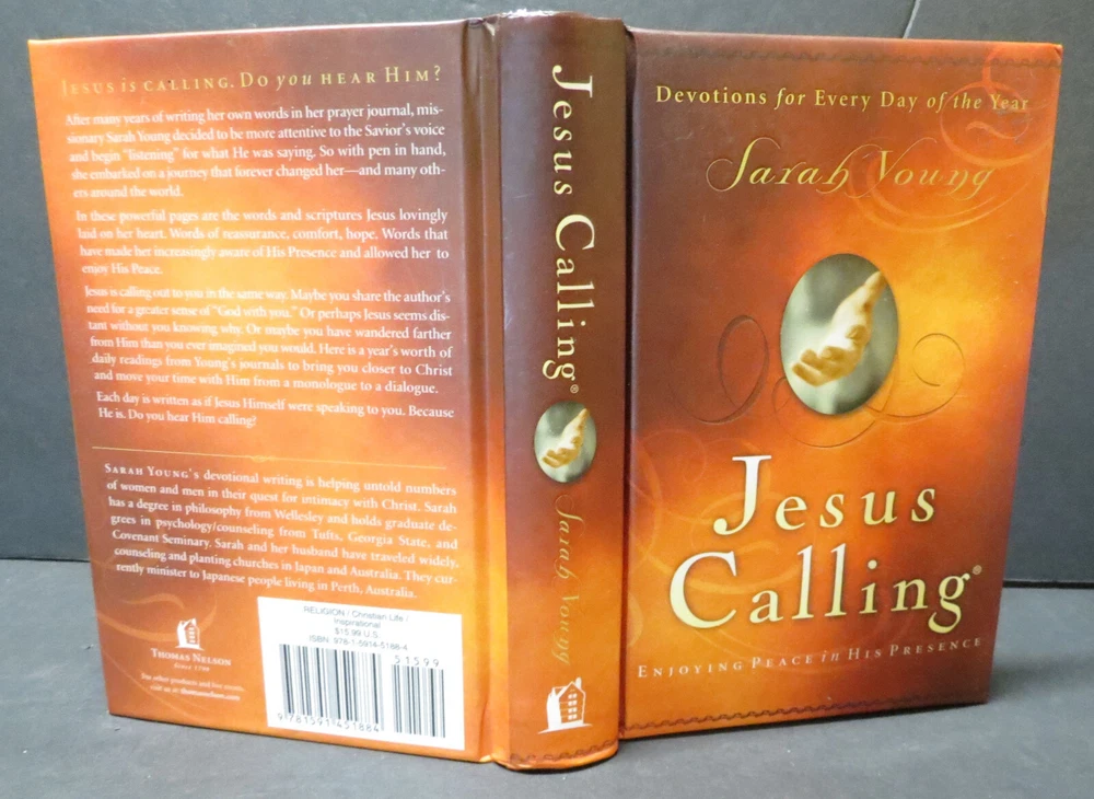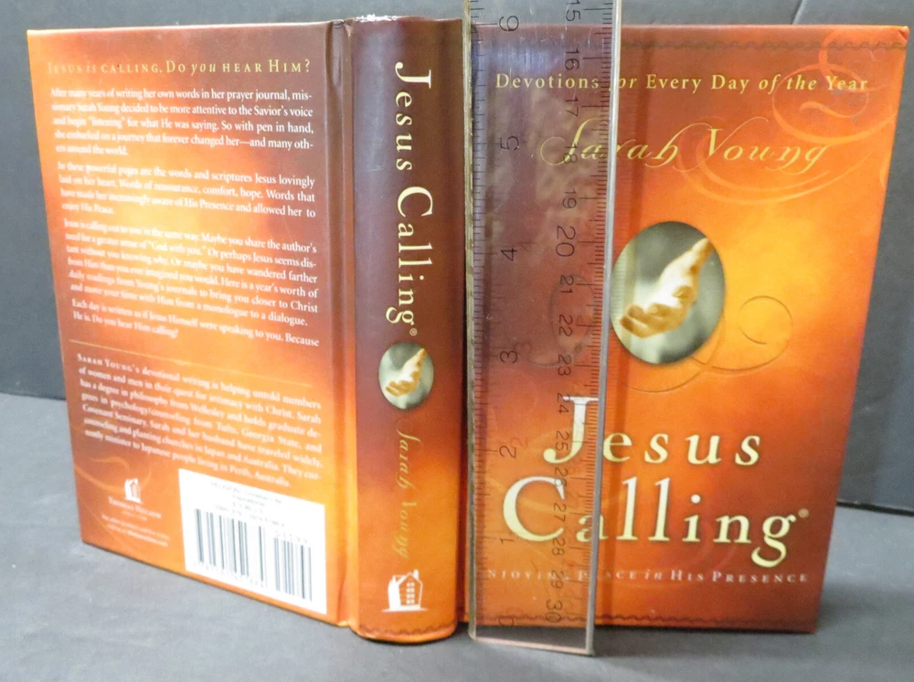 "Jesus Calling: Enjoying Peace in His Presence" is a devotional book written by Sarah Young, published by Nelson Incorporated, Thomas in 2004. This hardcover book contains 382 pages with devotions for every day of the year. It features faux leather binding, ribbon bookmark, and illustrations, along with Bible verse references. The book is designed to provide inspiration and guidance for readers seeking a deeper connection with God through daily reflections and prayers.