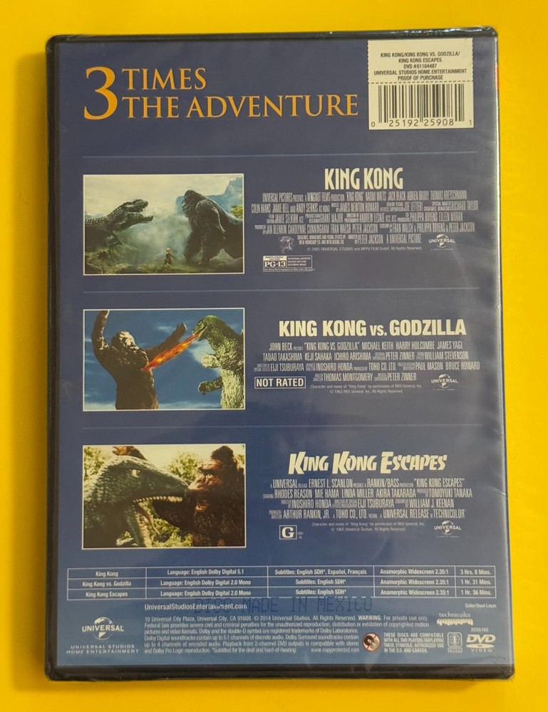 KING KONG 2005 + KING KONG VS GODZILLA + KING KONG ESCAPES DVD 3 Films NEW See our photos for details.