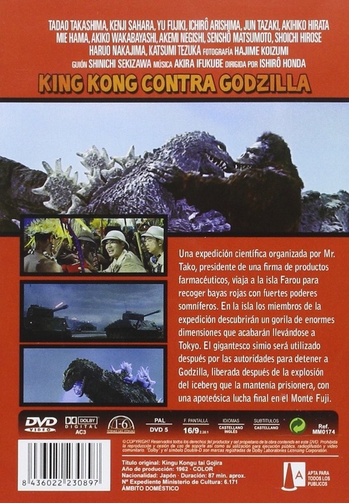 KING KONG CONTRA GODZILLA (DVD) Una expedición científica en una remota isla encuentra un enorme gorila al que llevarán a Tokyo. Allí deberá enfrentarse a un monstruoso ser. Prestalia e-commerce solut...