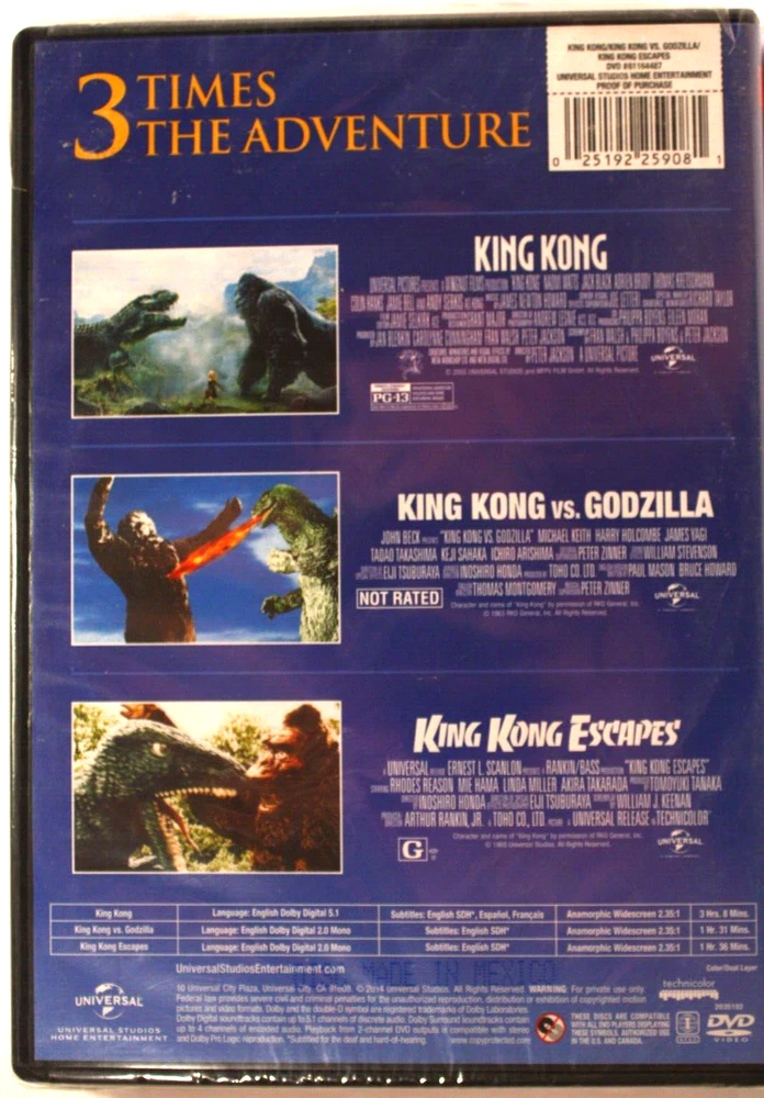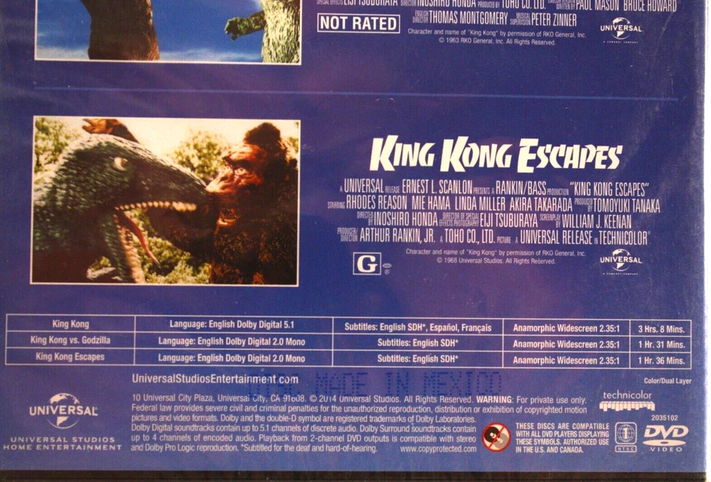 KING KONG - TRIPLE FEATURE!!! (DVD) 3 King Kong Movies - Brand New-Ships Free Triple Feature --- --- King Kong --- King Kong vs Godzilla --- King Kong Escapes --- >>> Note: Many DVDs and Blu-Rays have promotional items advertised on the packaging. Many of these may be available for a limited time only and have expired at the time of your purchase. Others may require a 'code' or 'key' available inside the packaging. A used/pre-owned purchase may no longer have the 'code' or 'key' in the packaging.