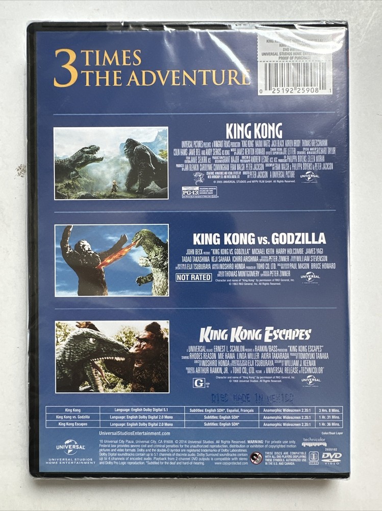 "KING KONG TRIPLE FEATURE" King Kong vs Godzilla Kong Escapes DVD (2014) New.