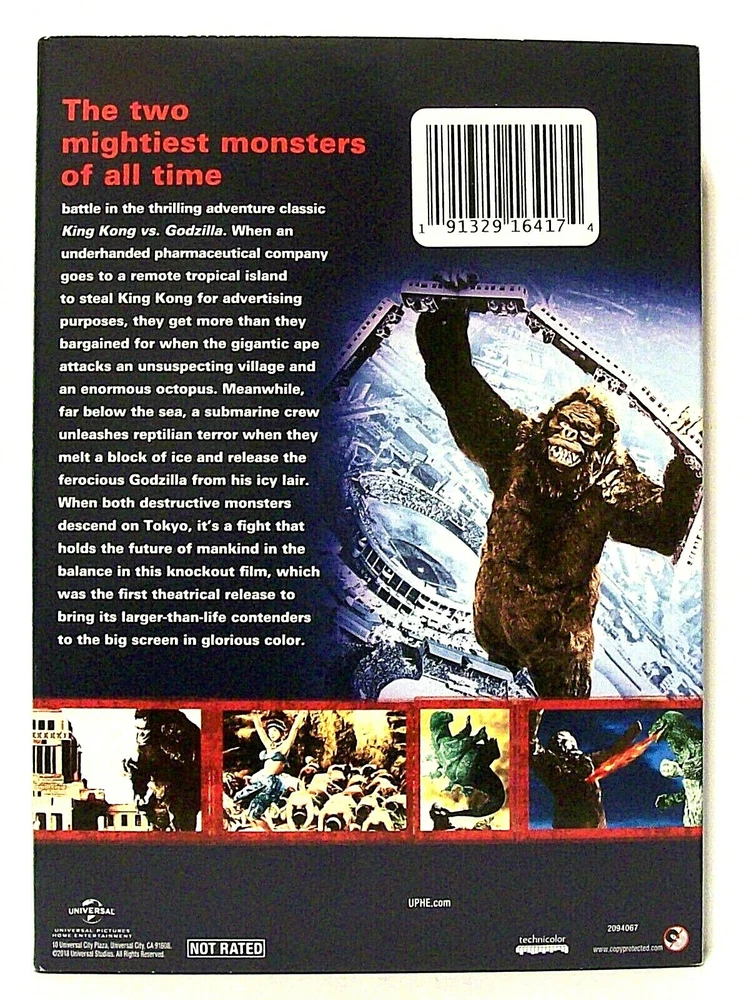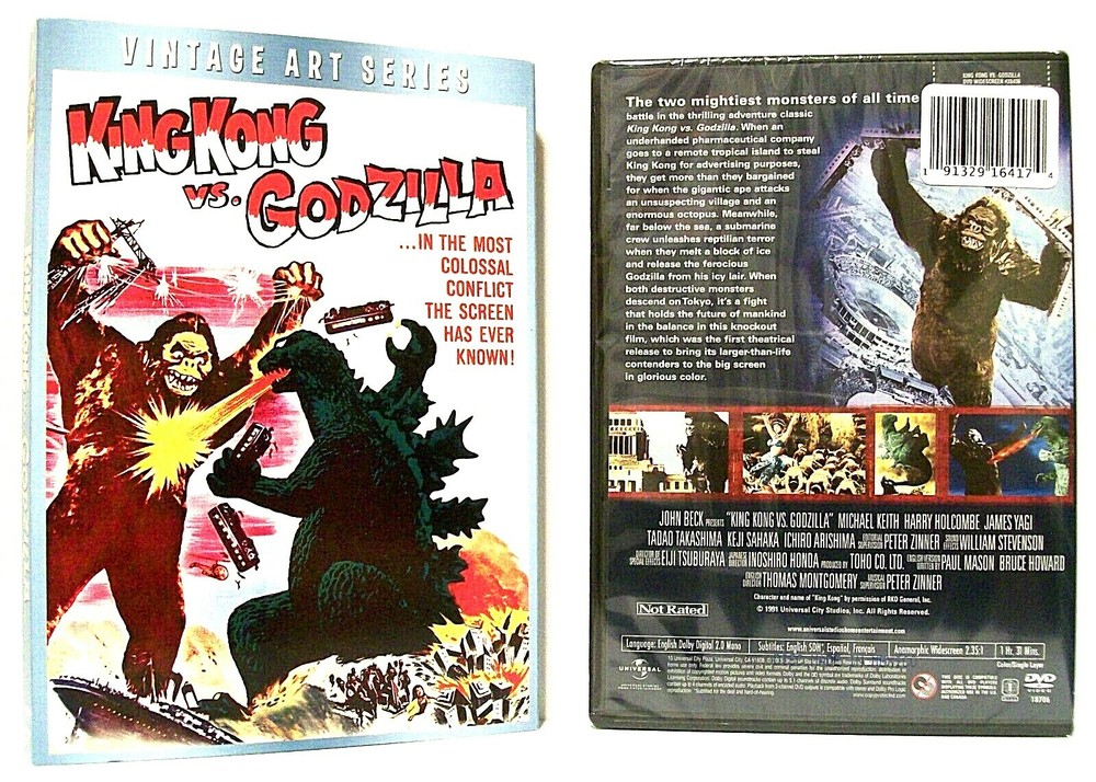 TOHO, UNIVERSAL PICTURES HOME ENTERTAINMENT DVD "THE TERRIFYING BATTLE BETWEEN THE MIGHTIEST MONSTERS OF ALL TIME!" "KING KONG VS GODZILLA" DVD released in 2005 VINTAGE ART SERIES SLIPCOVER Edition released 2018 Movie released 1963 UPC # 025192843624 REGION 1 New, Widescreen English language English SDH, Spanish, French subtitles Includes collectible vintage art SLIPCOVER ***(see photos) Directed by INOSHIRO HONDA, THOMAS MONTGOMERY Starring MICHAEL KEITH, HARRY HOLCOMBE, JAMES YAGI, TADAO TAKASHIMA, KEJI SAHAKA, ICHIRO ARISHIMA ________________________________________________________________________________________________________________ Check out our other items ! IMPORTANT!!!! Please read the following: WE GLADLY COMBINE SHIPPING COSTS ON ALL E-BAY PURCHASES. PLEASE E-MAIL WITH ANY QUESTIONS. ANY AND ALL INTERNATIONAL BIDDERS MUST E-MAIL BEFORE AUCTION'S END REGARDING SHIPPING COSTS OUTSIDE OF THE UNITED STATES, AS SHIPPING RATES WILL VARY. Due to people not leaving feedback! we will be leaving feedback only upon receipt of your feedback. Sorry for this action and thanks for your understanding. Thank you for looking. Any and all Ebay auction sales to be paid for in full within SEVEN days of the auction's end. Other arraingements regarding payment to be authorized by the seller (that's me!) only after e-mail notification and at my discretion. I gladly combine shipping costs for multiple auction wins and will ship worldwide. Shipping costs outside of the U.S. to be provided after the auction's end and/or after the buyer has contacted me via e-mail. I value positve feedback regarding all transactions, and leave FEEDBACK after every sale. I expect the buyer to do the same. Bidding on any item on EBAY constitutes a contract to buy that item, so only serious buyers are encouraged. If for any reason payment is not made for the final sale and/or in a timely fashion agreed upon, I as the seller reserve the right to relist the item, and feedback for the transaction will reflect that fact. Thank you, and Happy Ebaying!!!